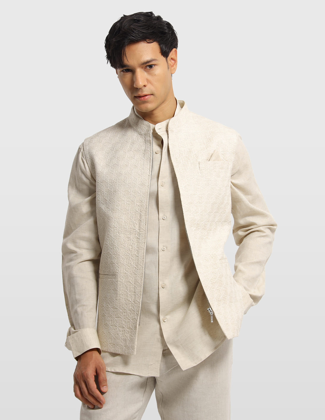 Geometric Embroidered Shirt Waistcoat Ethnic Set