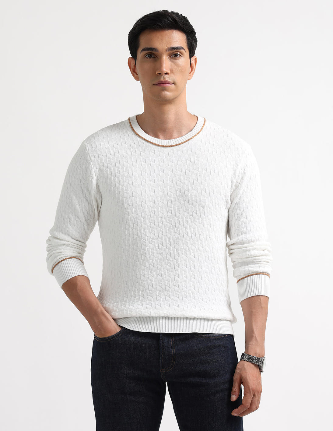 Geometric Patterned Knit Regular Fit Sweater