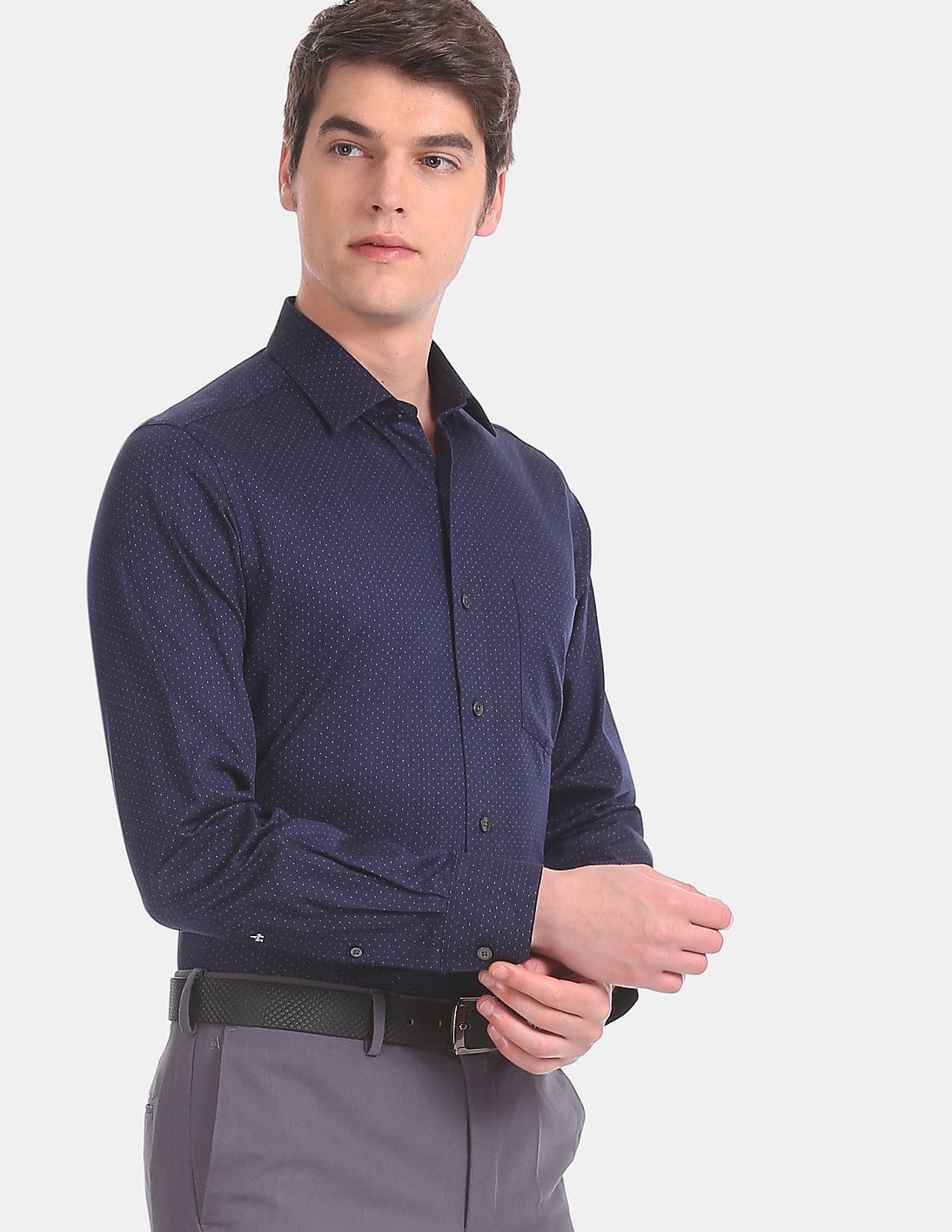 French Placket Long Sleeve Patterned Formal Shirt