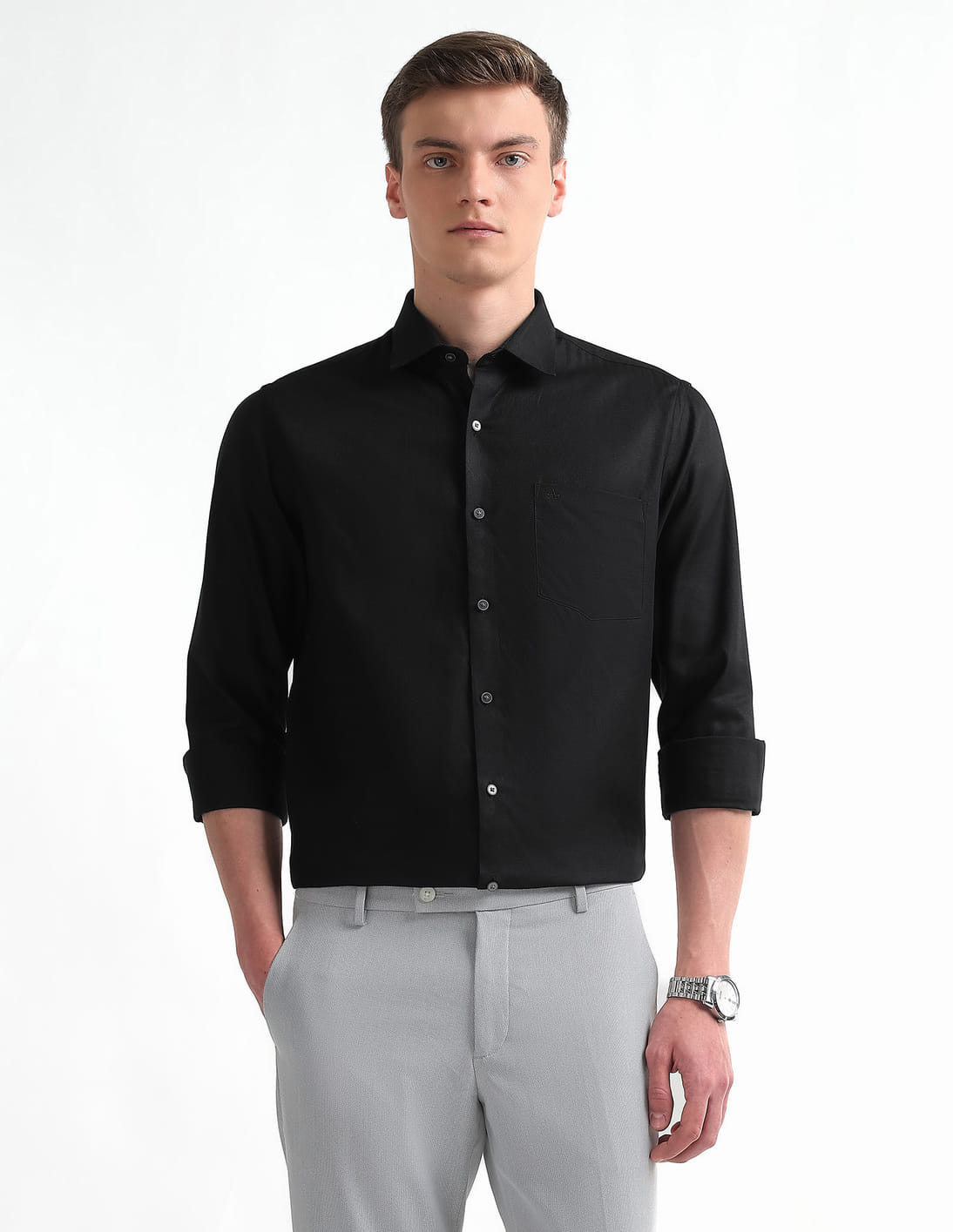 French Placket Manhattan Slim Fit Solid Shirt