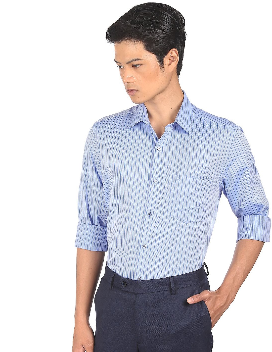 Mitered Cuff Striped Formal Shirt