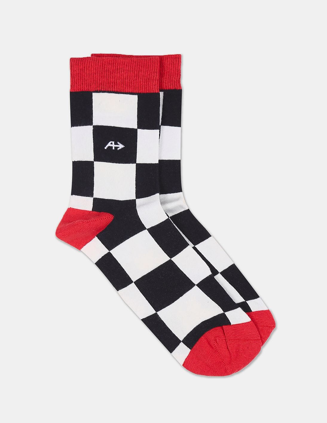 Men White And Black Check Crew Length Socks