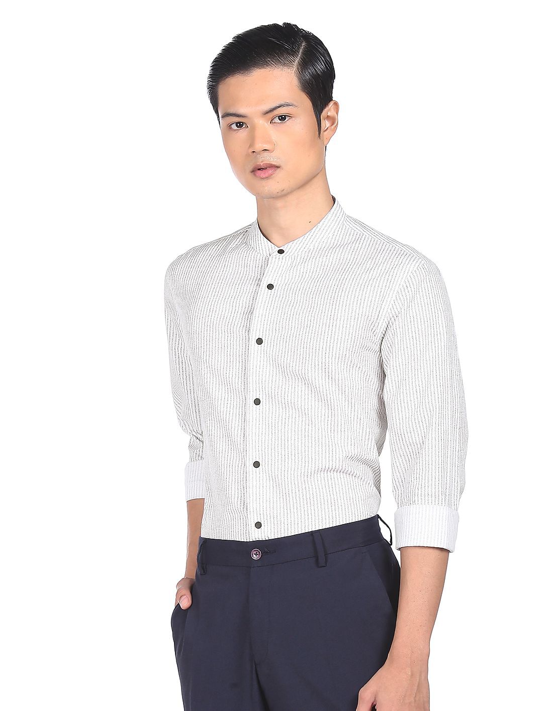 Band Collar Printed Formal Shirt