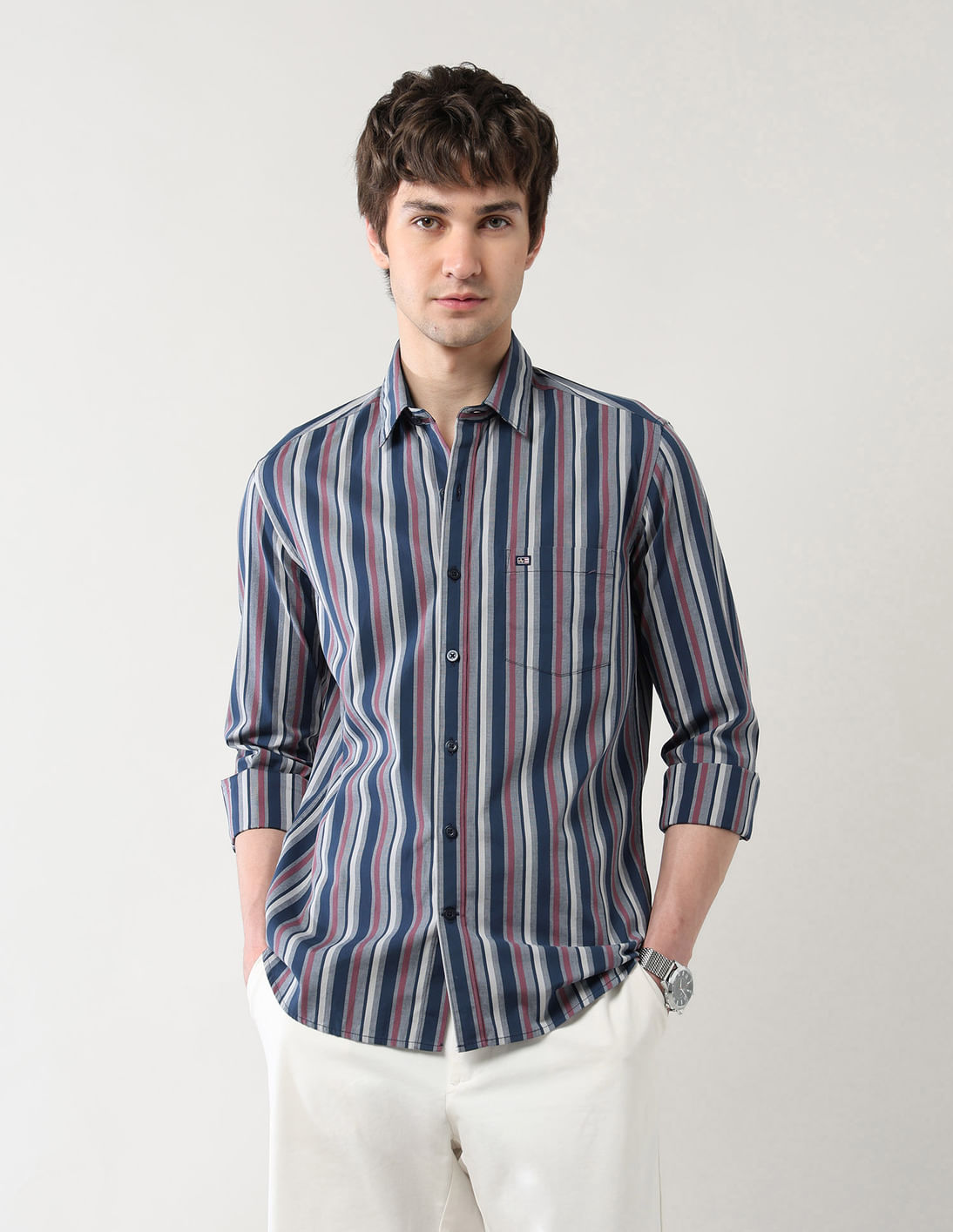 Vertical Striped Slim Fit Air Soft Shirt