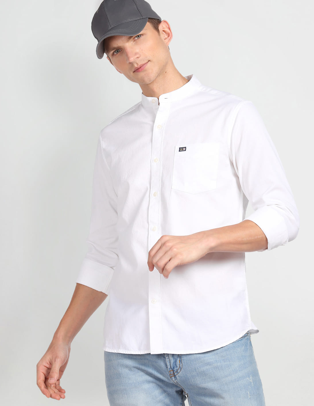 Mandarin Collar Twill Shirt