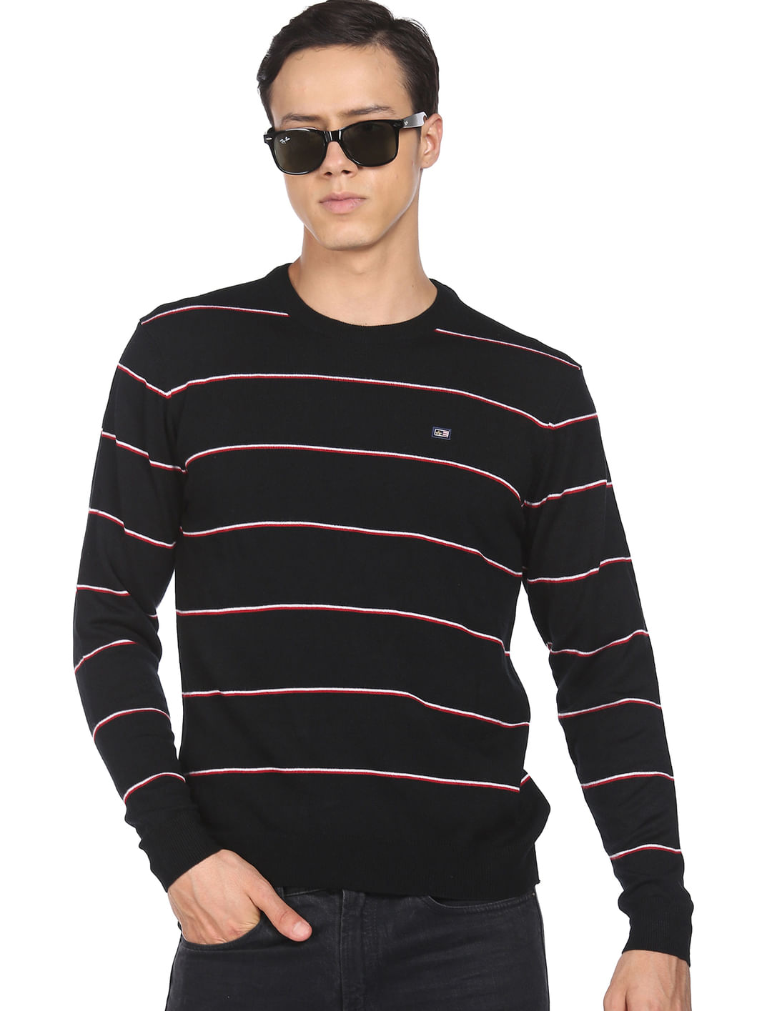 Crew Neck Horizontal Stripe Acrylic Sweater