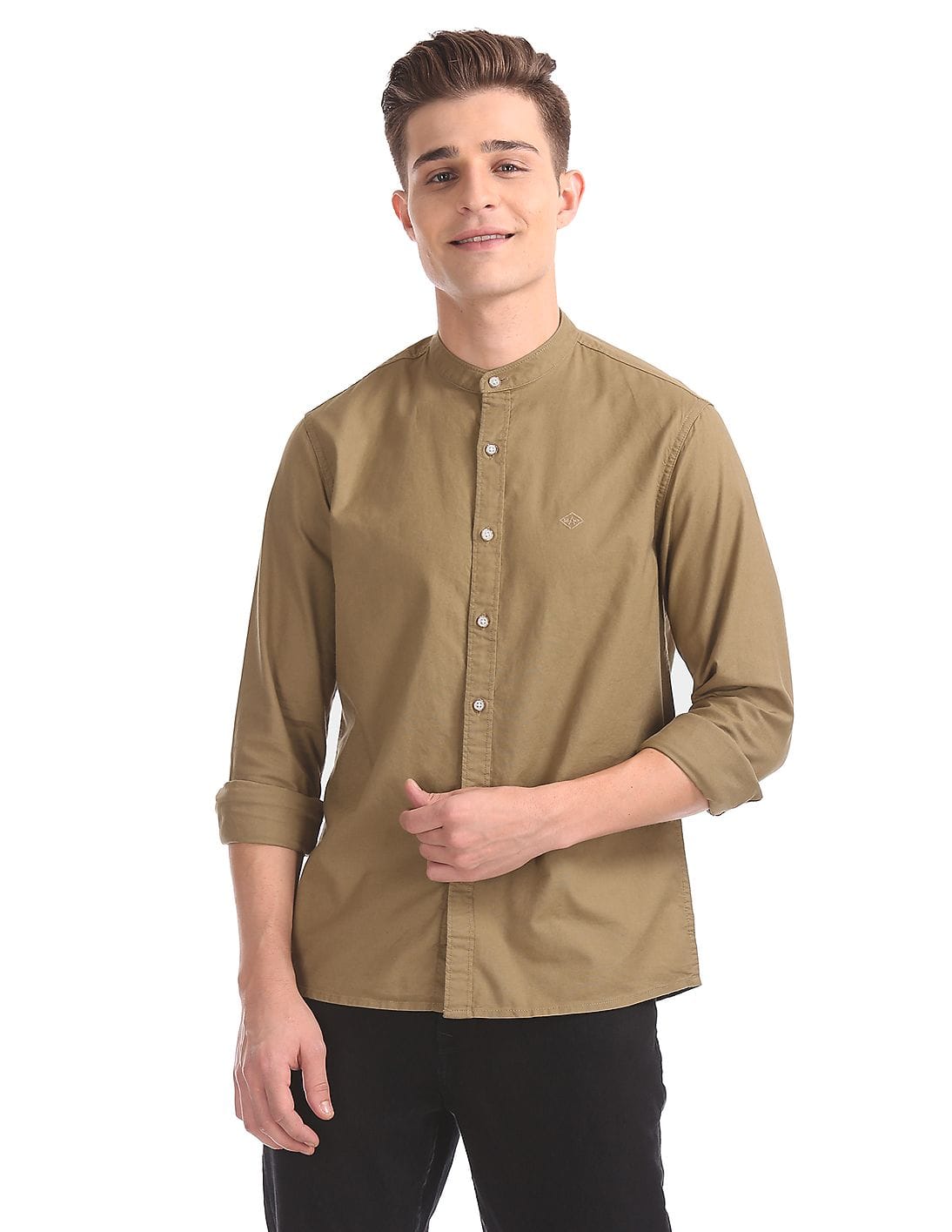 Slim Fit Mandarin Collar Shirt