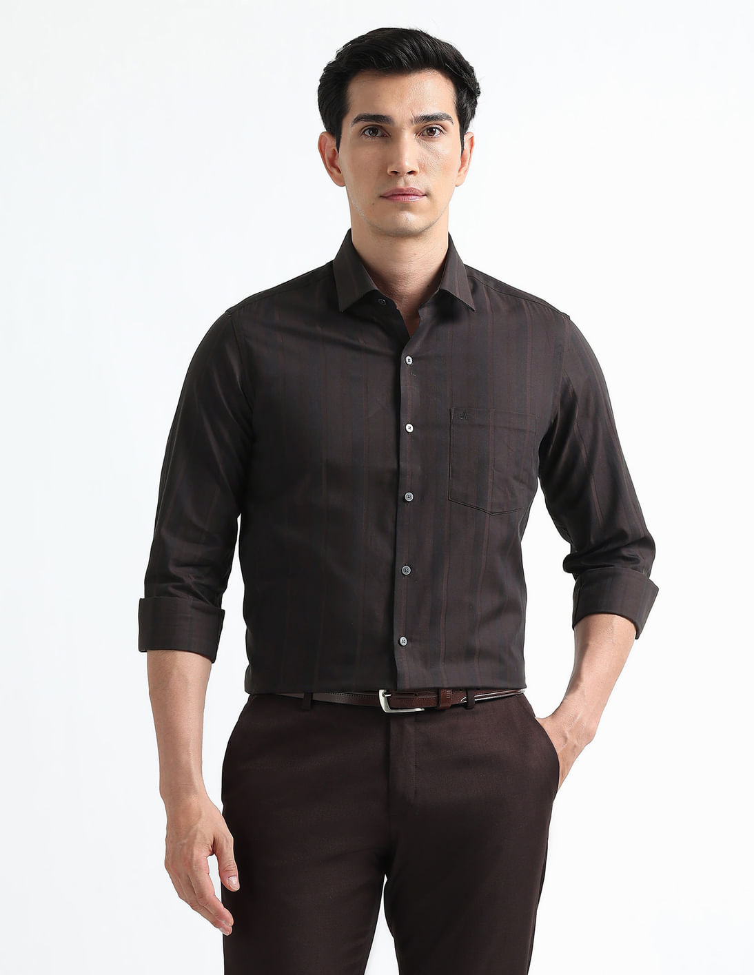 Vertical Striped Manhattan Slim Fit Twill Shirt