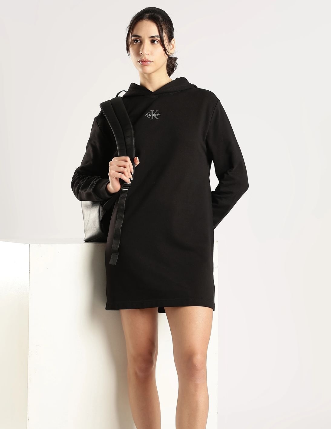 Cotton Hooded Neck Sweatshirt Dress