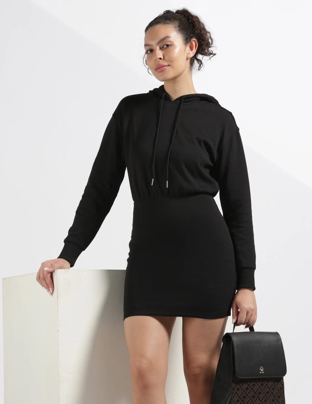 Cotton Hooded Neck Sweatshirt Dress