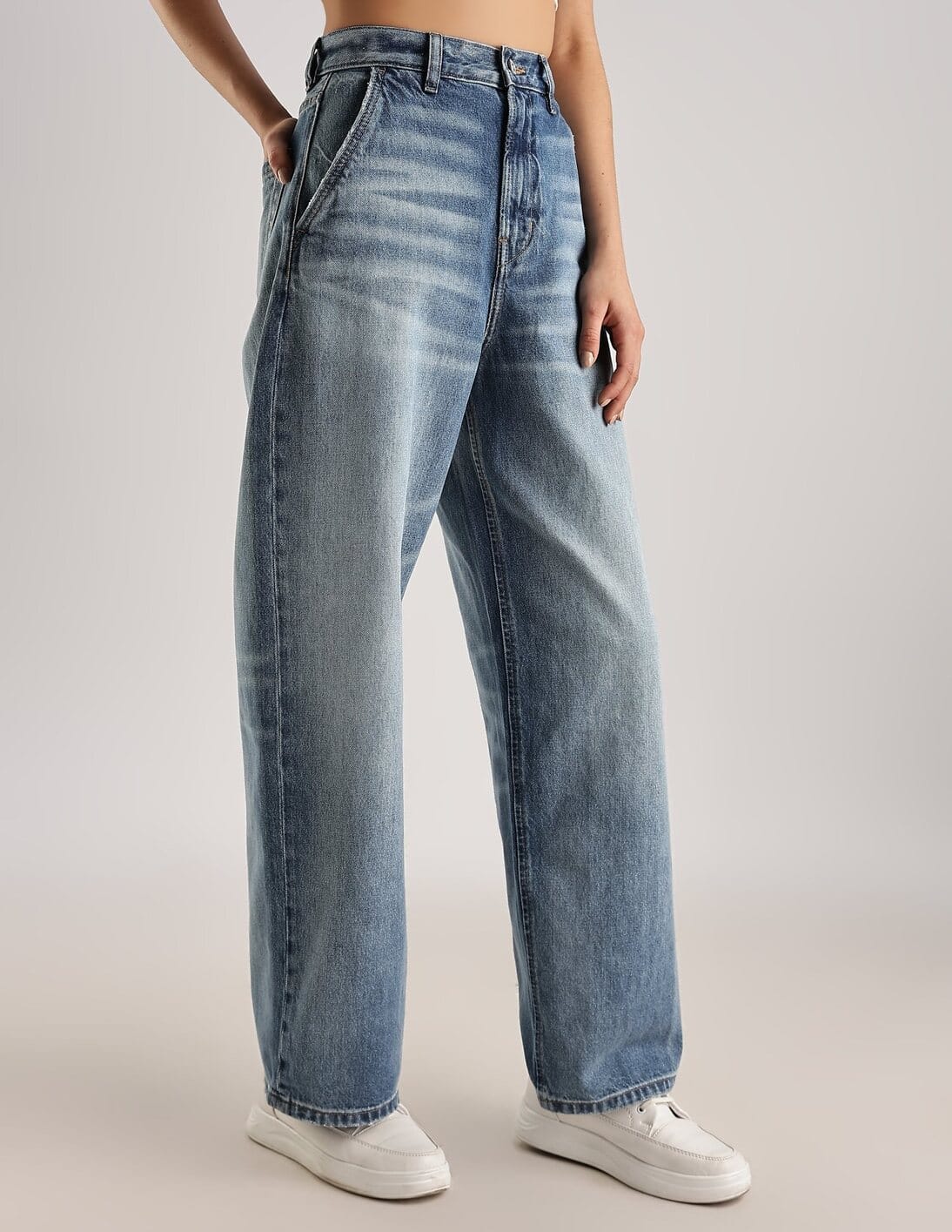 Mid-Wash Relaxed Fit High Rise Jeans