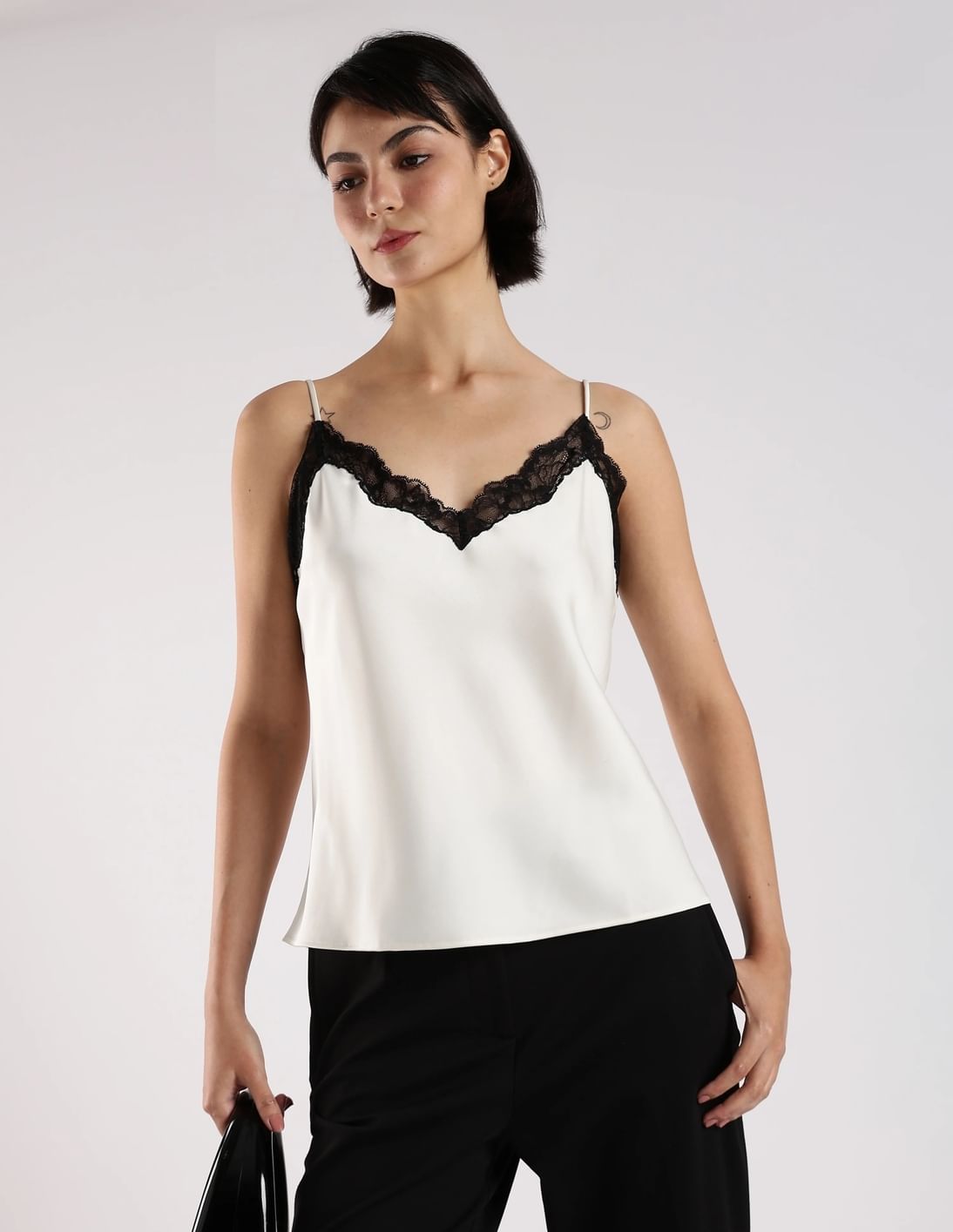 Regular Fit Polyester Spaghetti-Straps Neck Cami Top
