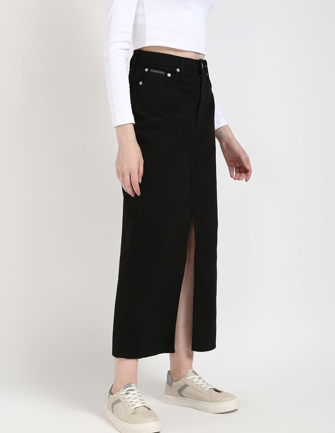 Slim-Fit Solid Mid Rise Skirt