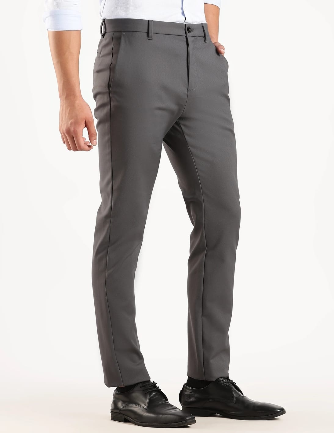 Slim Fit Solid Mid Rise Trouser