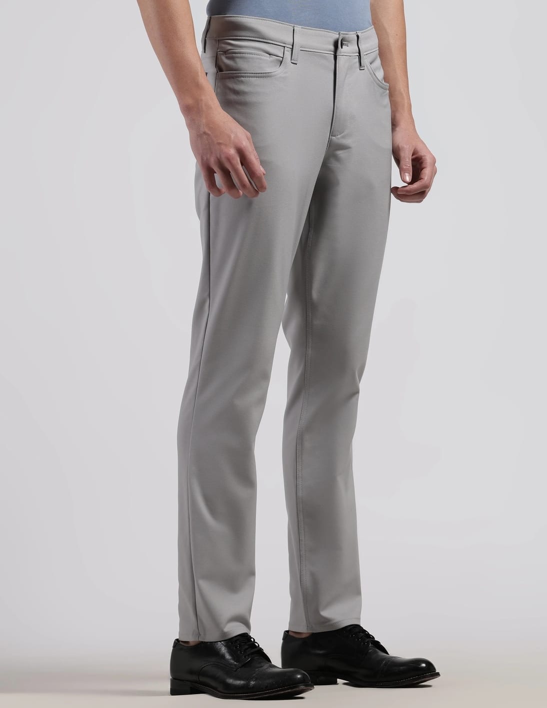 Slim Fit Solid Mid Rise Trouser