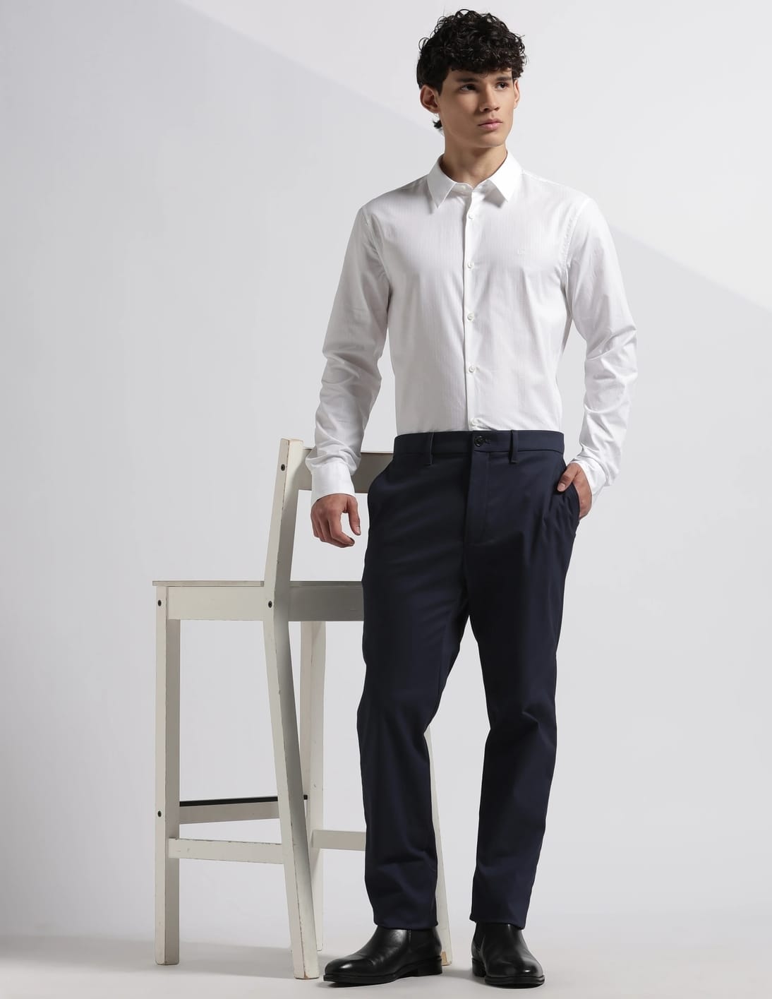 Slim Fit Solid Mid Rise Trouser
