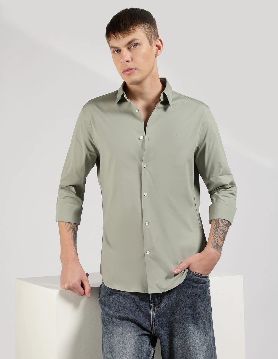 Solid Slim Fit Cotton Shirt
