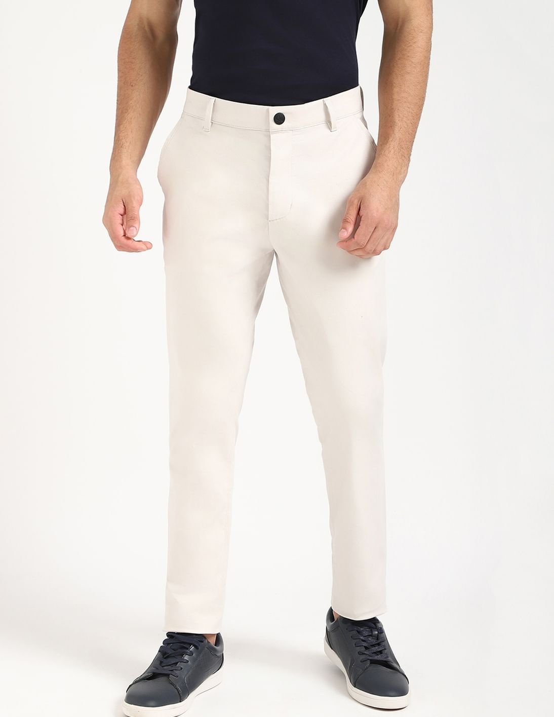 Tapered Fit Solid Mid Rise Trouser