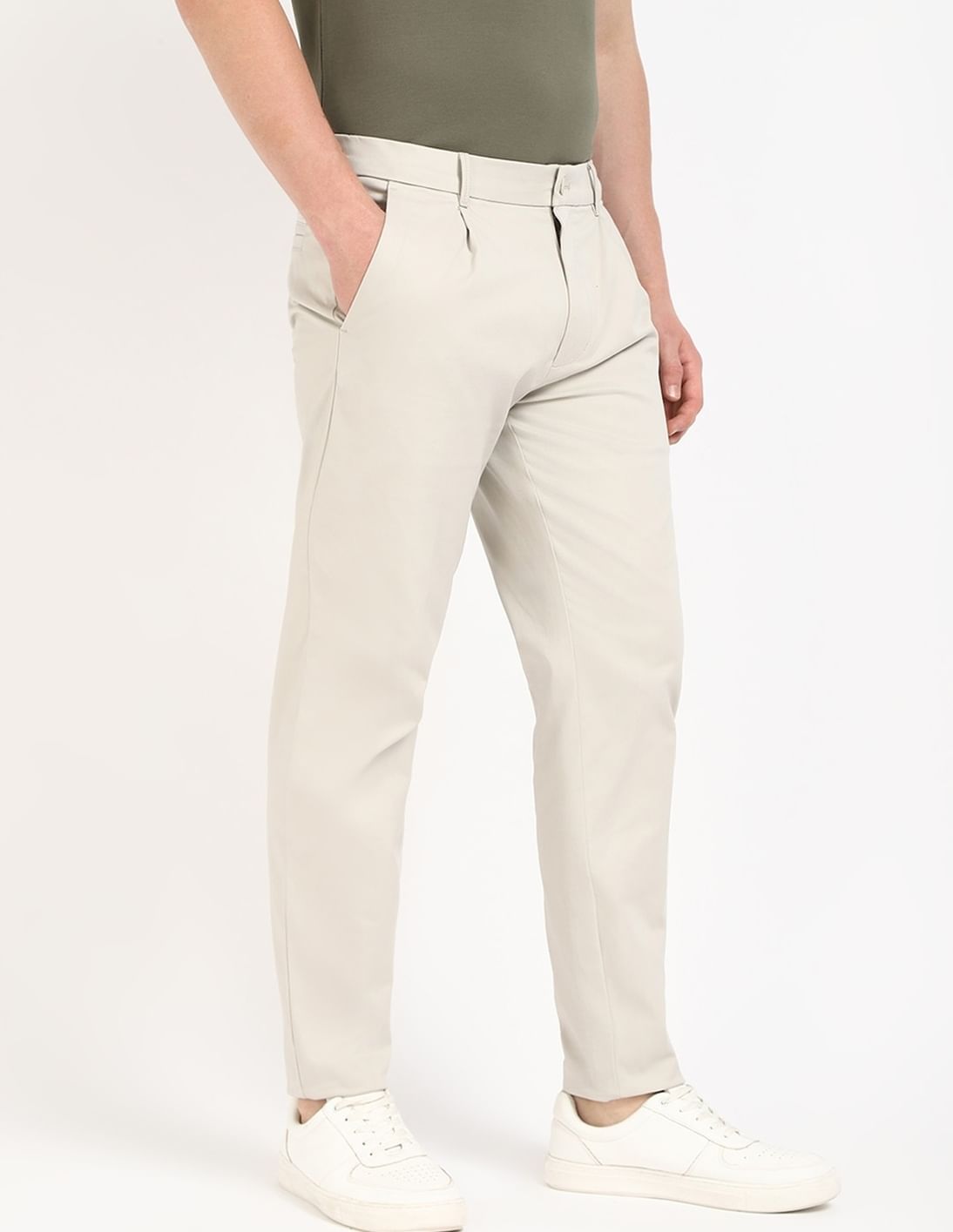 Tapered-Fit Solid Mid Rise Trouser