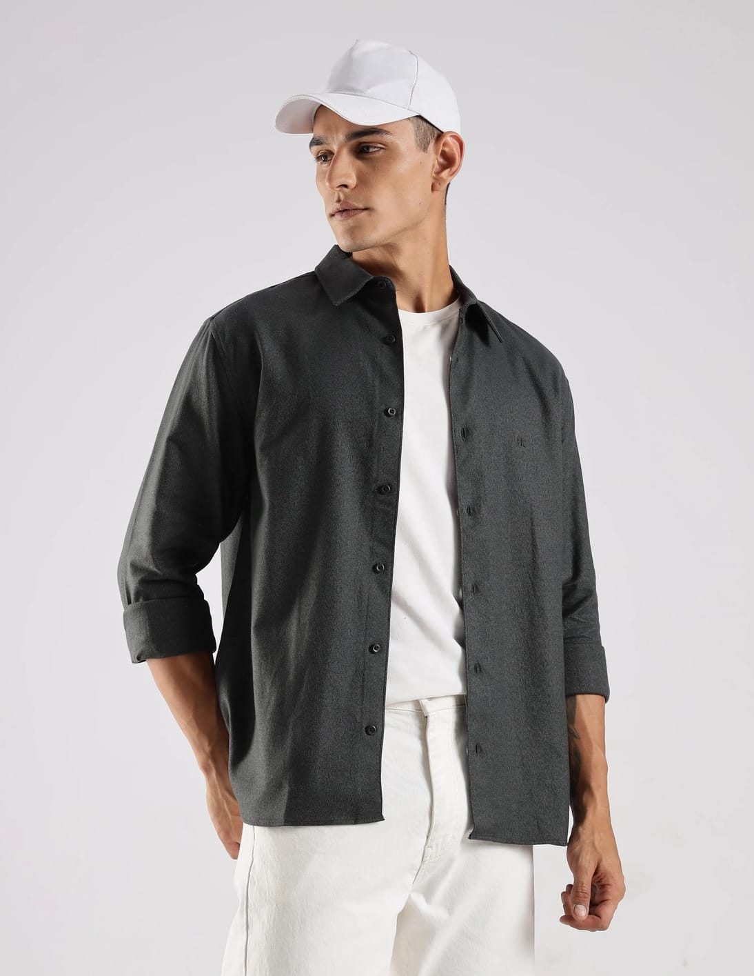 Textured Relaxed Fit Cotton Shirt