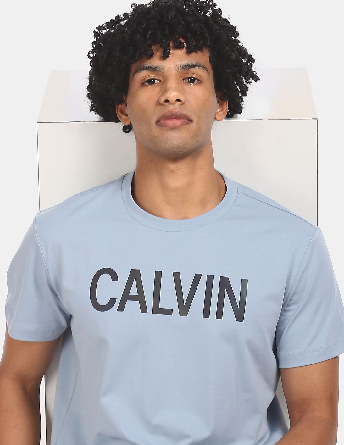 Men Light Blue Slim Fit Iridescent Logo T-Shirt