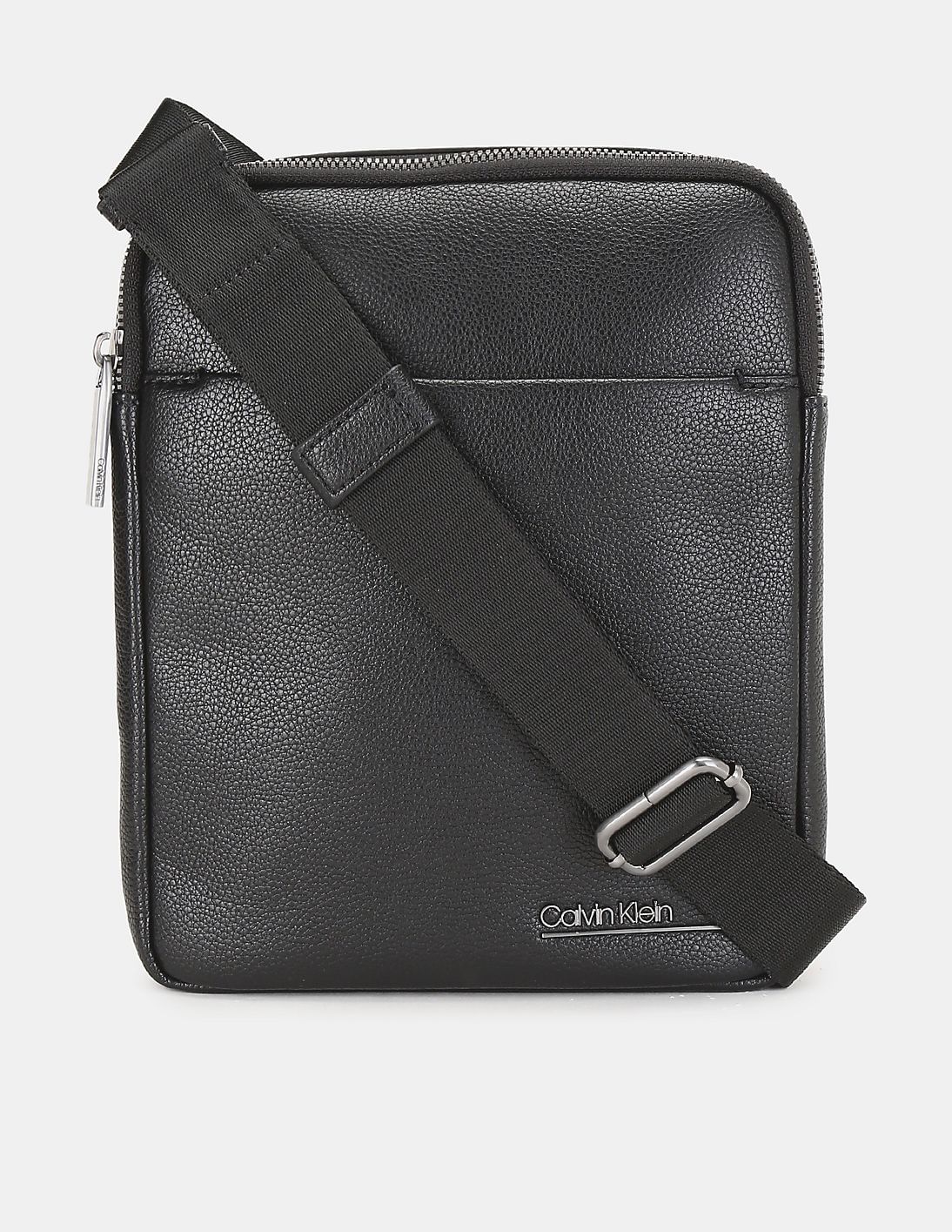 Men Black Zipper Top Textured Cross Body Sling Bag