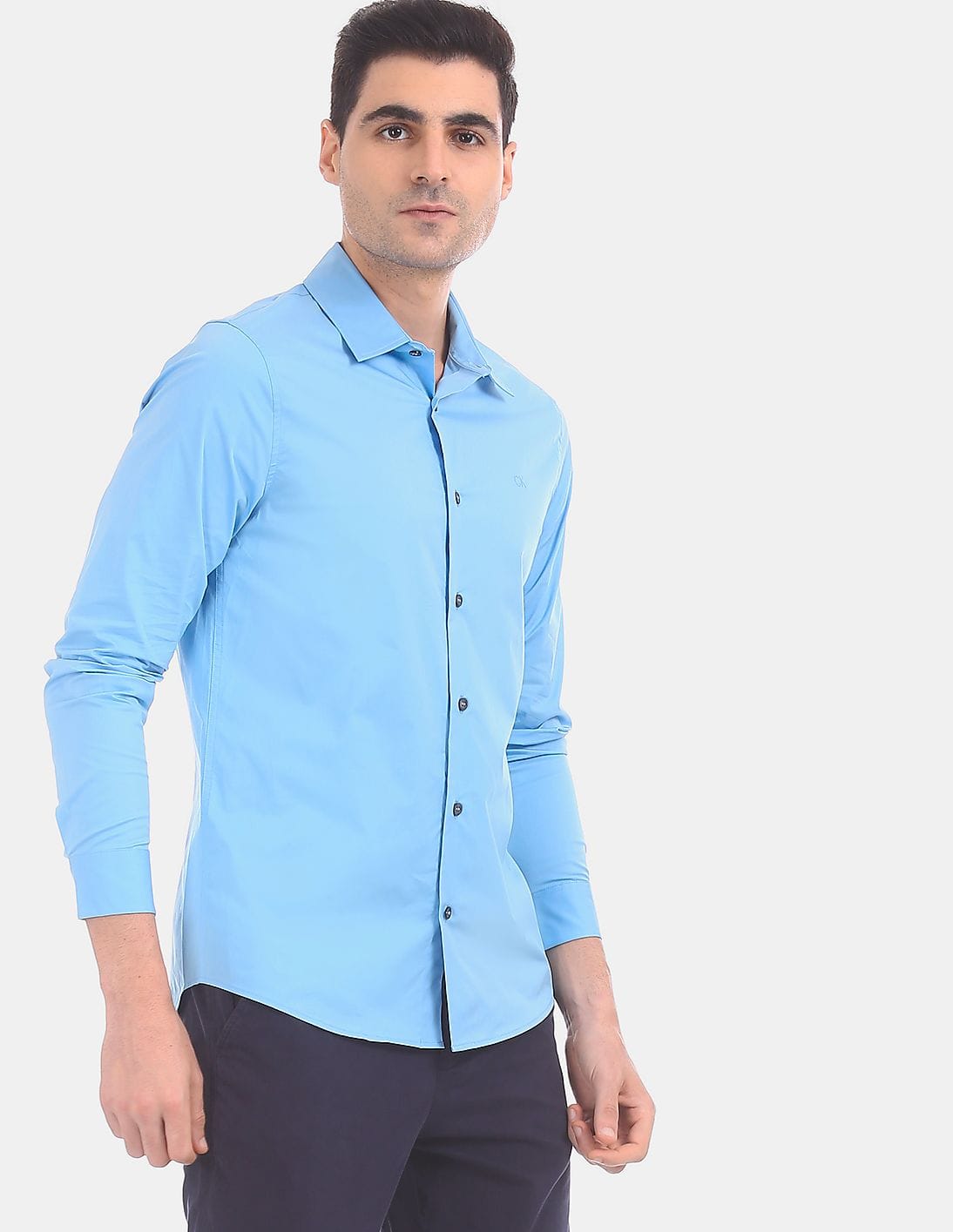 Men Sky Blue Solid Full Sleeve Cotton Casual Shirt