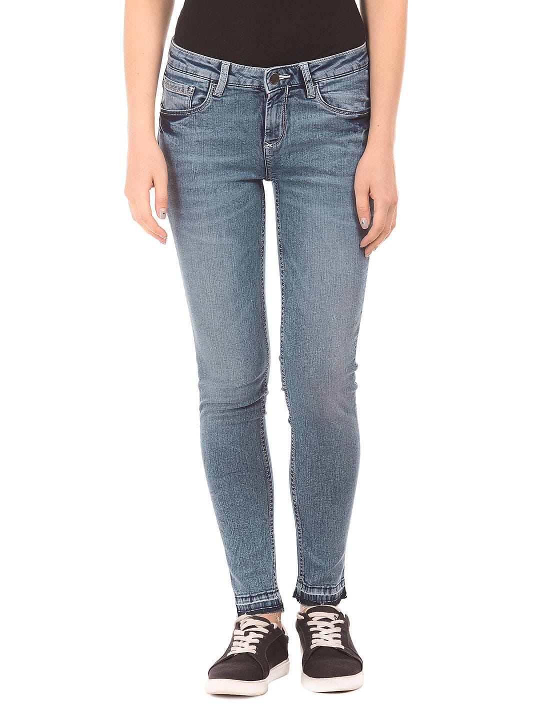 Stone Wash Raw Hem Jeans