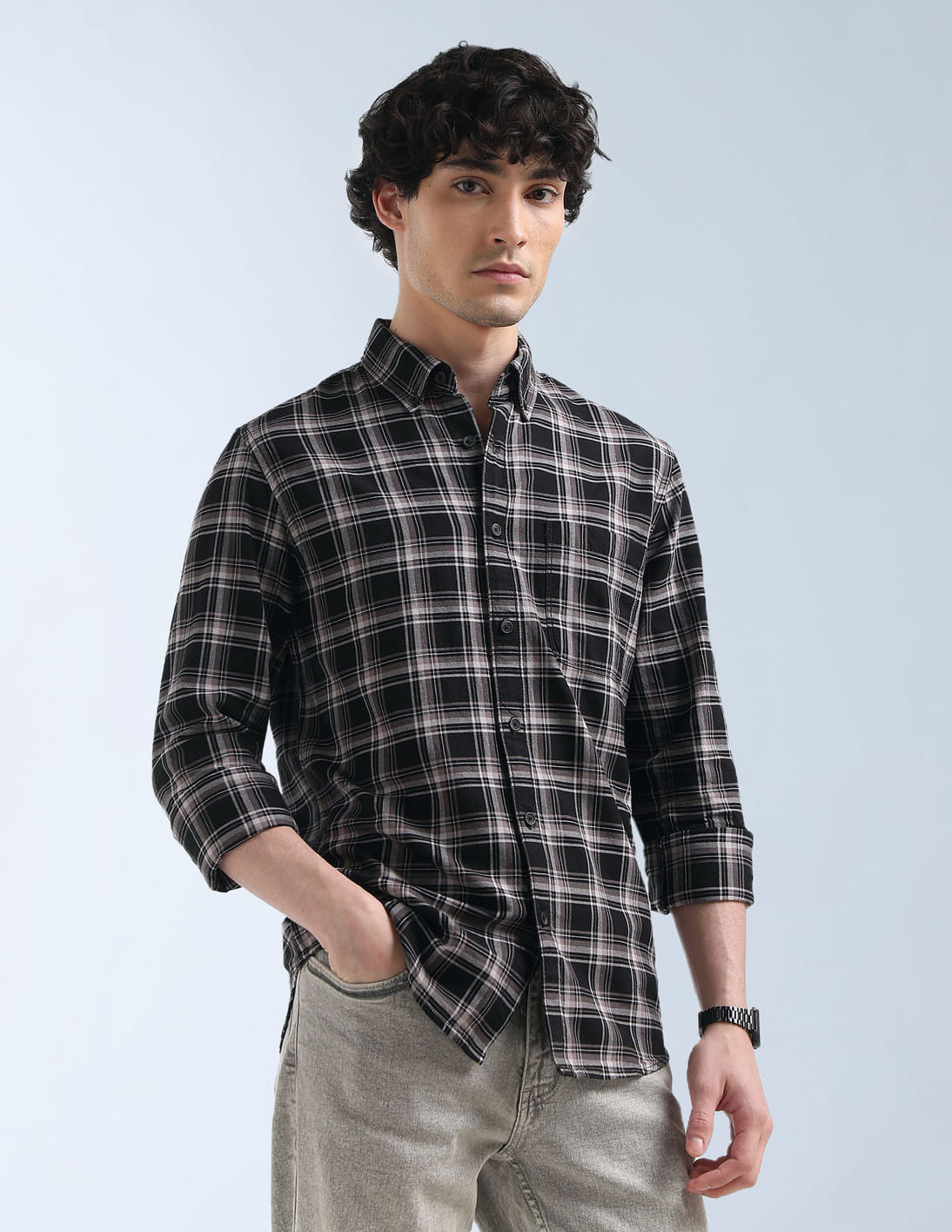 Grid Tattersall Checked Slim Fit Shirt
