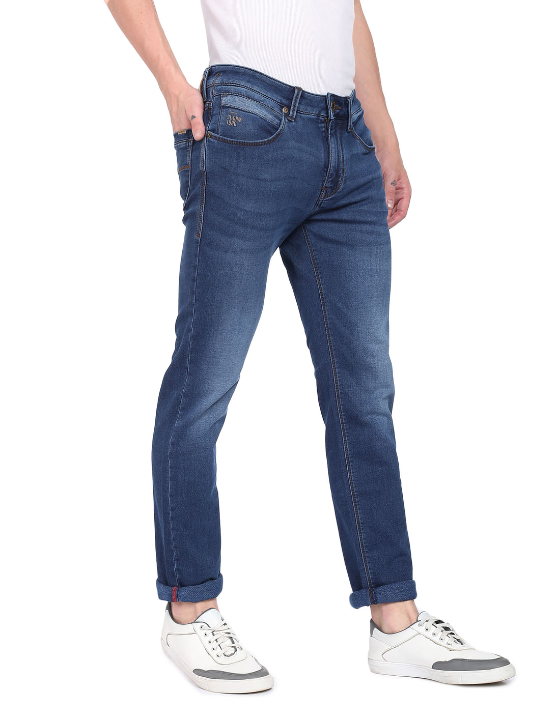 Mid Rise Denim Weave Stone Wash Jeans