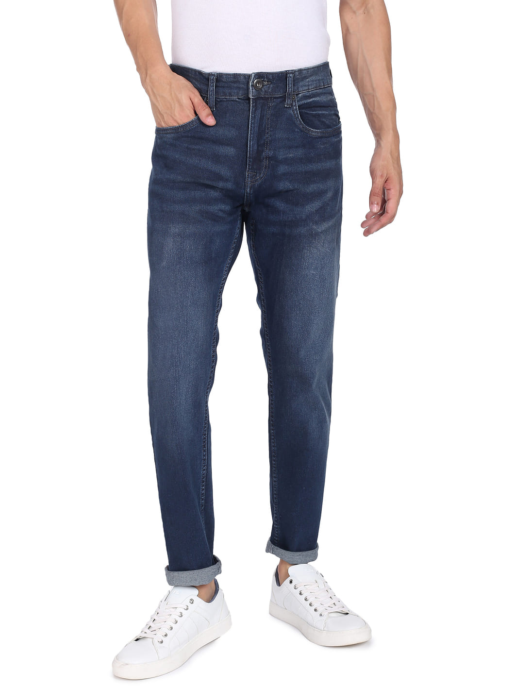 Stone Wash Slash Slim Tapered Fit Jeans