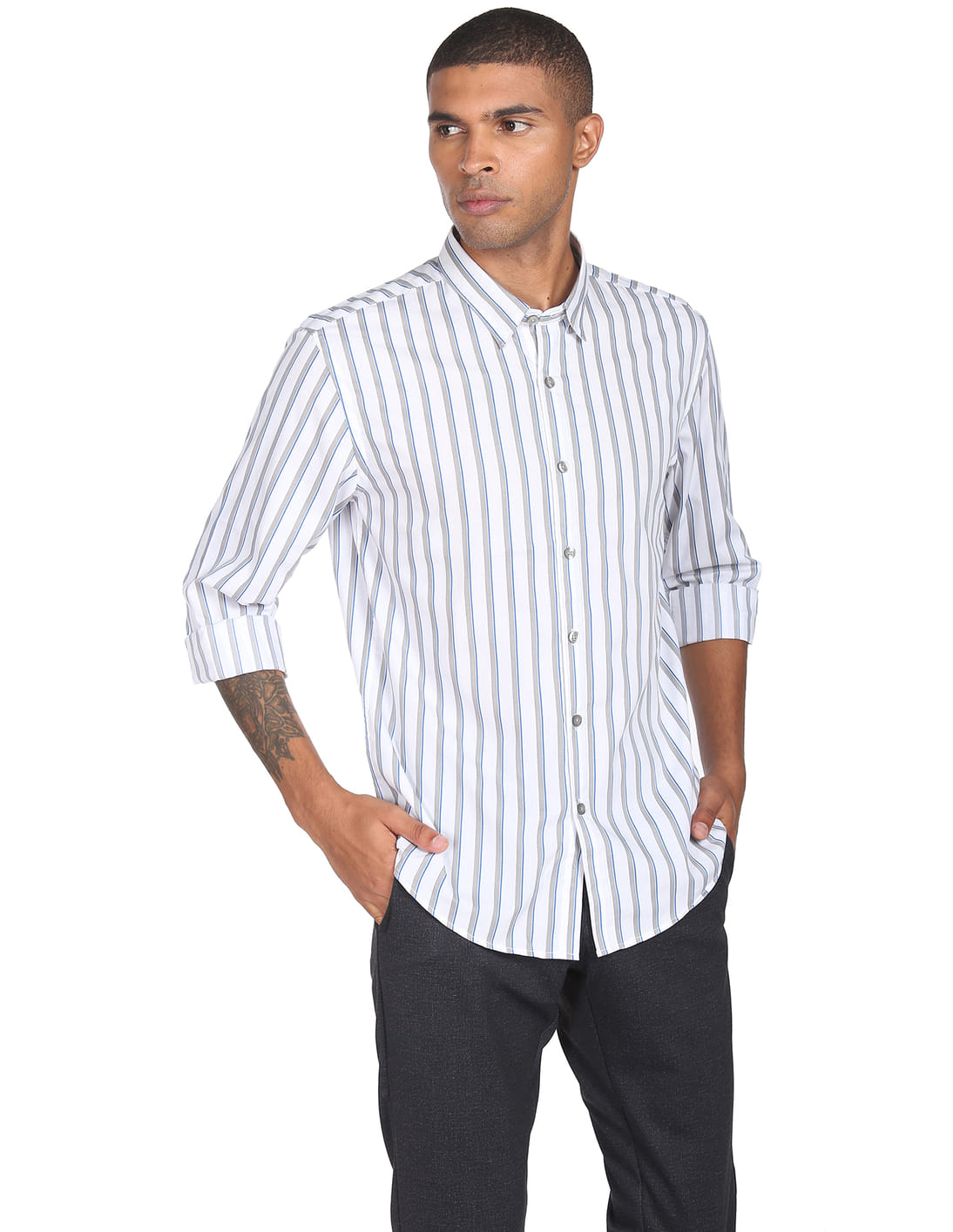 Vertical Stripe Slim Fit Casual Shirt
