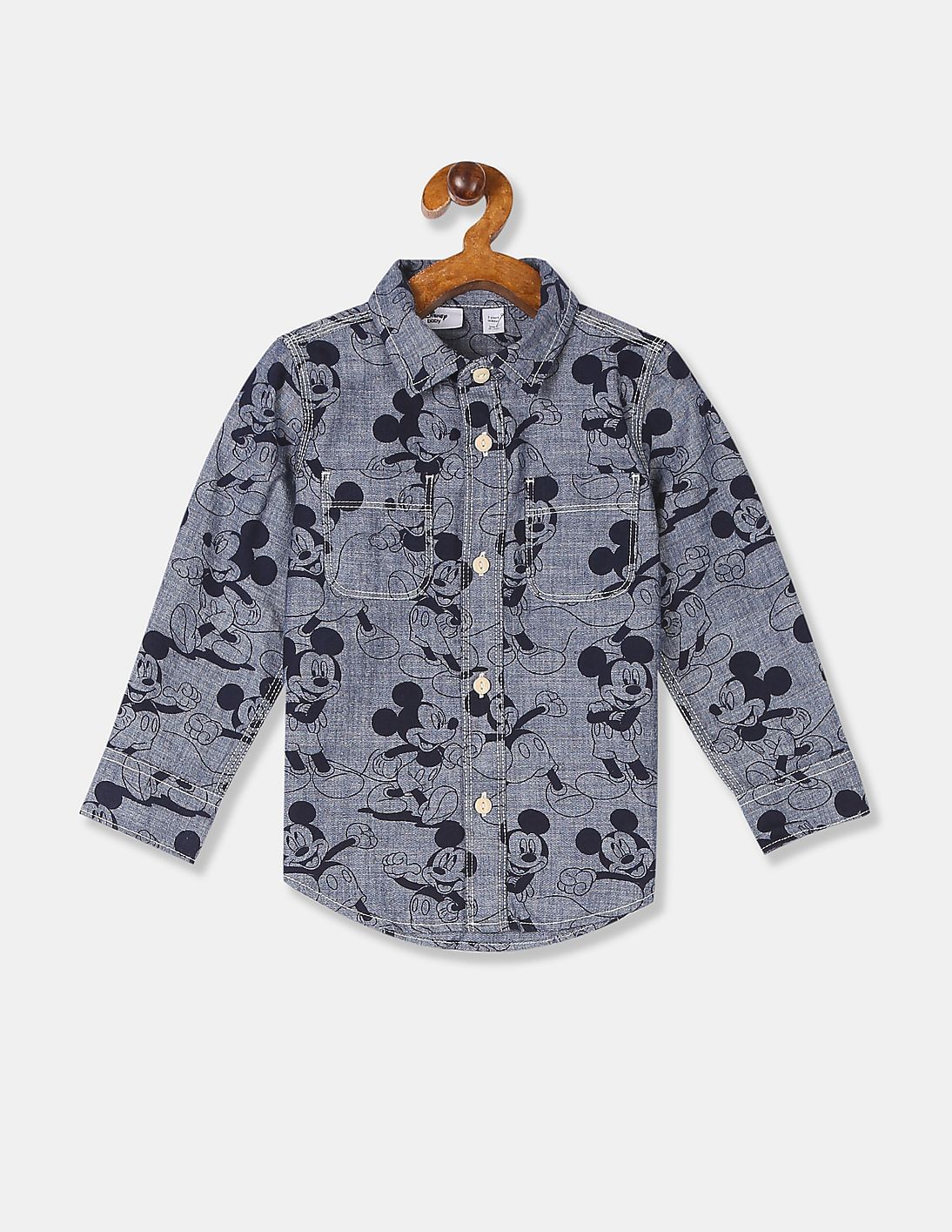 Boys Blue Disney Mickey Mouse Graphic Chambray Shirt