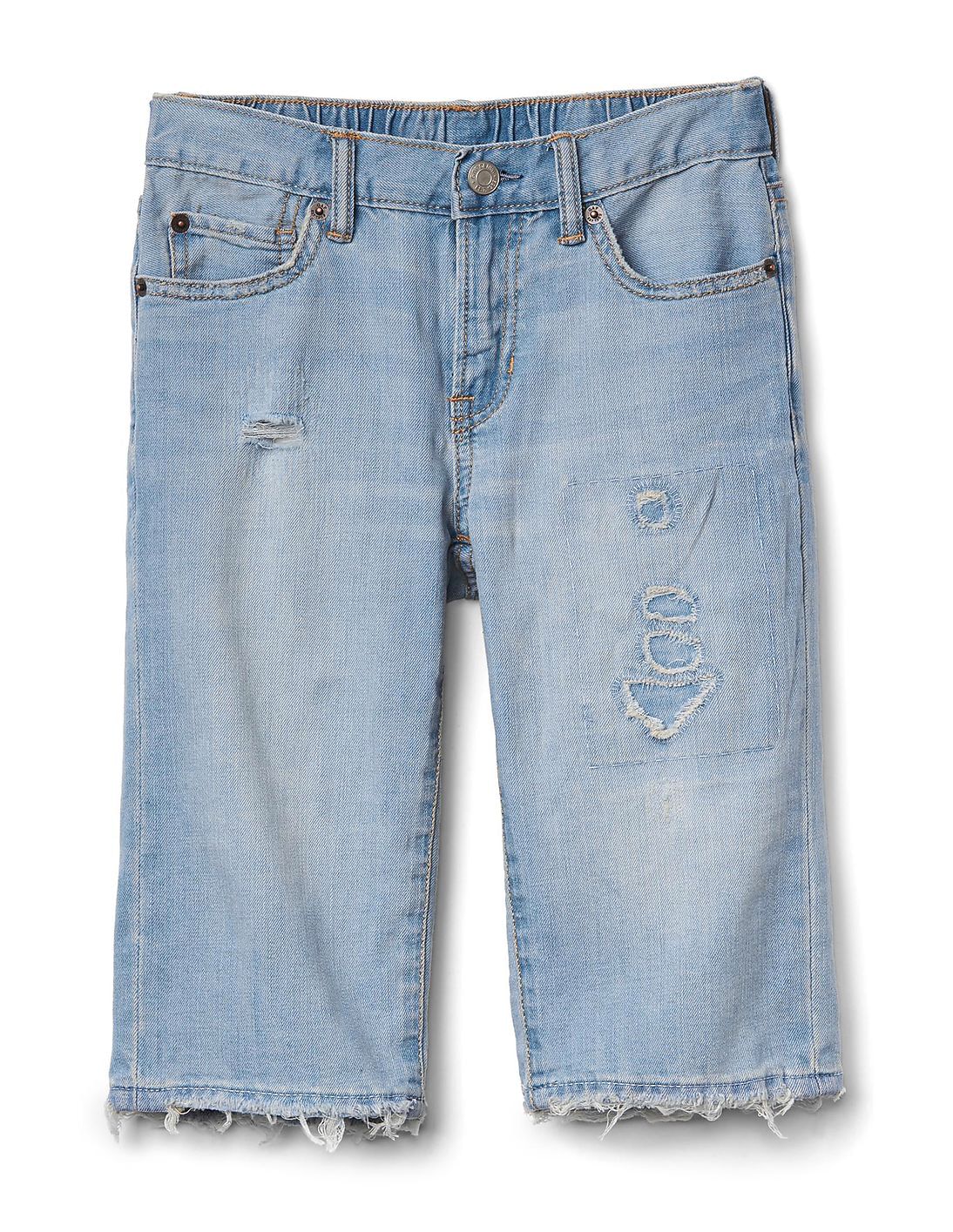Boys Blue Stretch Destructed Denim Three Quarter Shorts