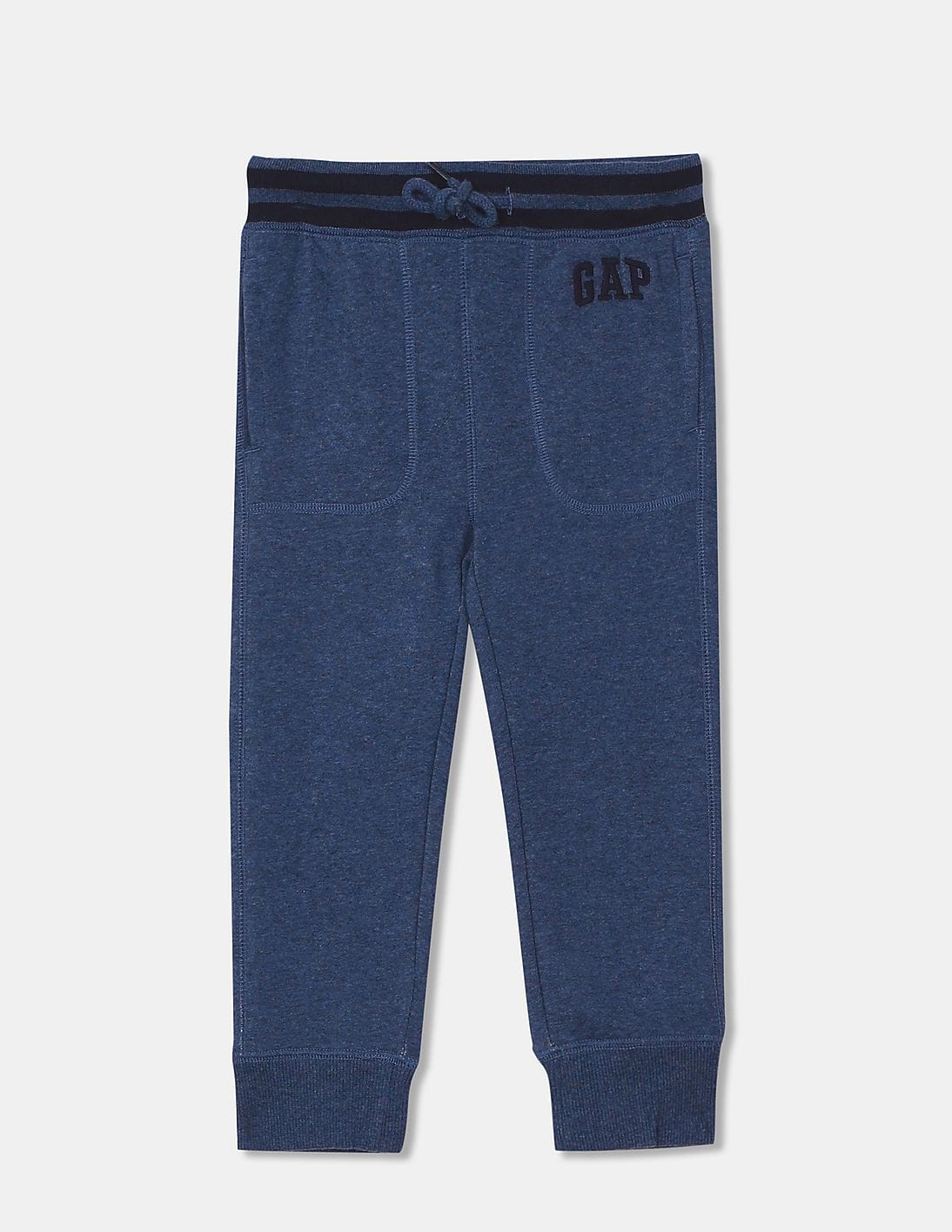 Boys Dark Blue Ribbed Waistband Heathered Knit Joggers