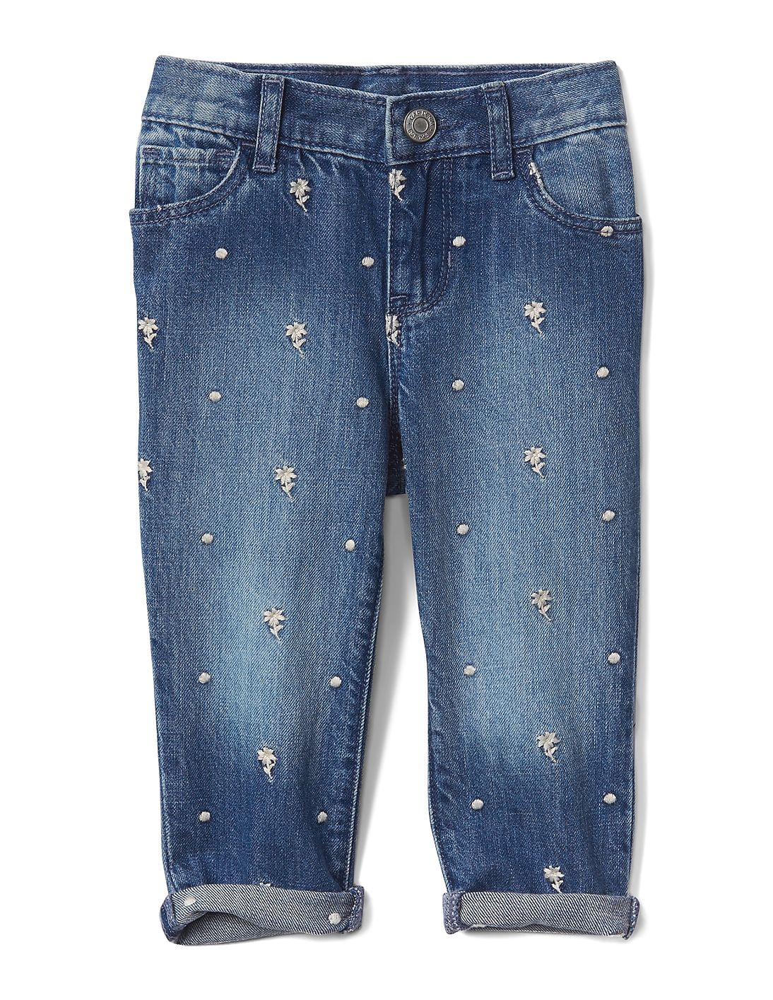 Girls Blue Girlfriend Jeans In Floral Embroidery