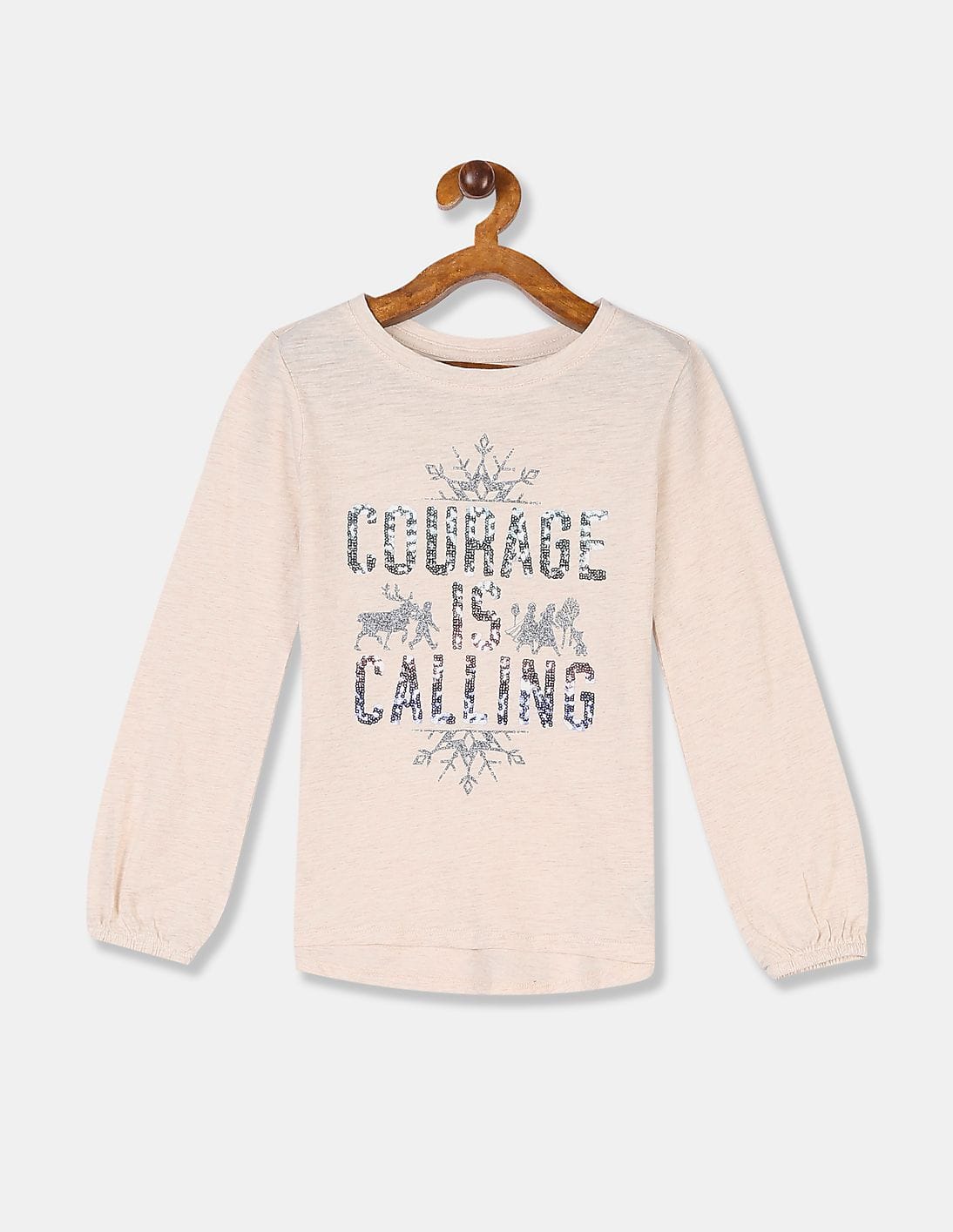 Girls Beige Disney Frozen 2 Sequin T-Shirt
