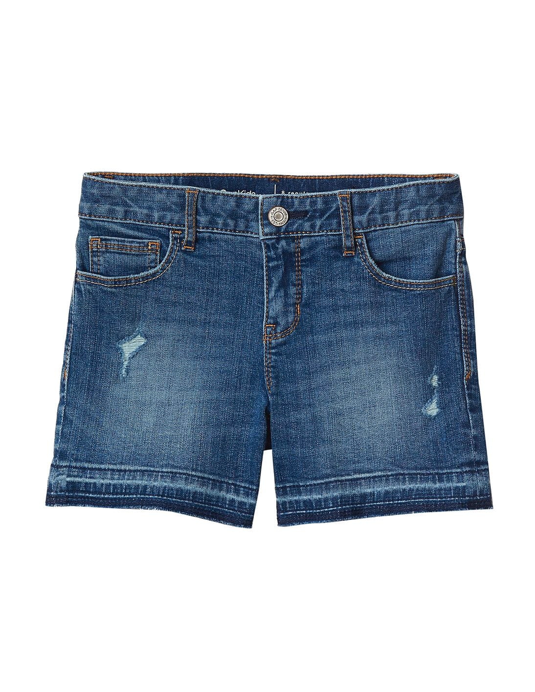 Girls Blue 1969 Distressed High Stretch Midi Shorts