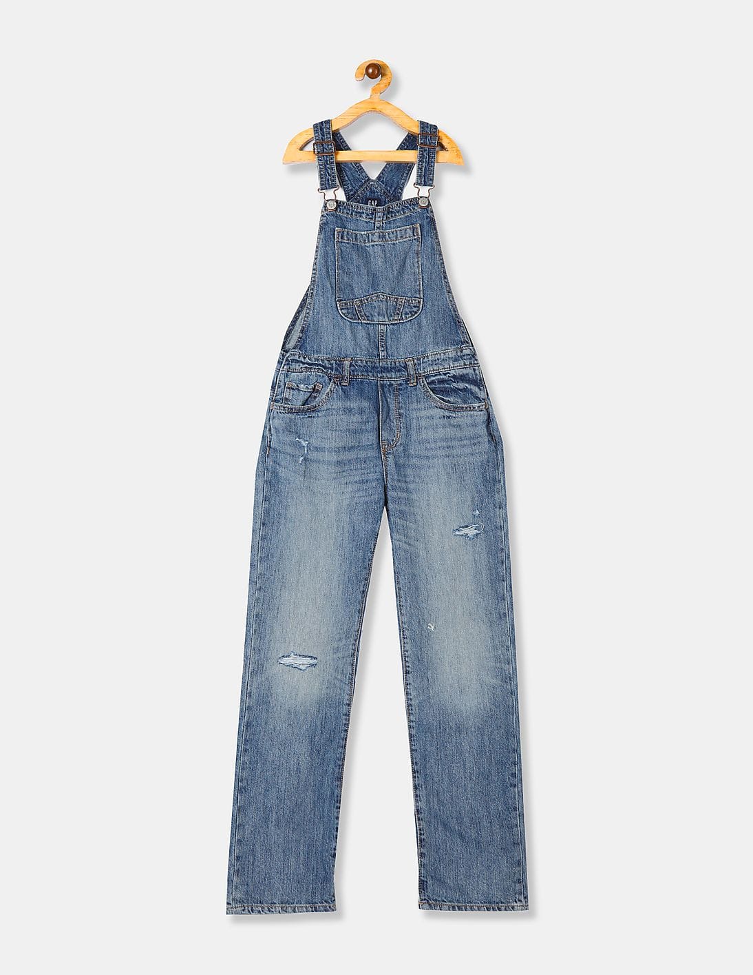 Girls Blue Distressed Overalls