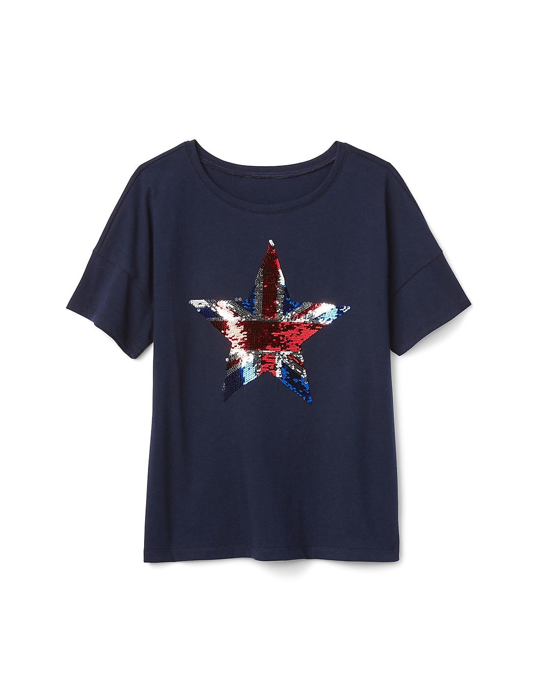 Girls Blue Flippy Sequin Union Jack T-Shirt