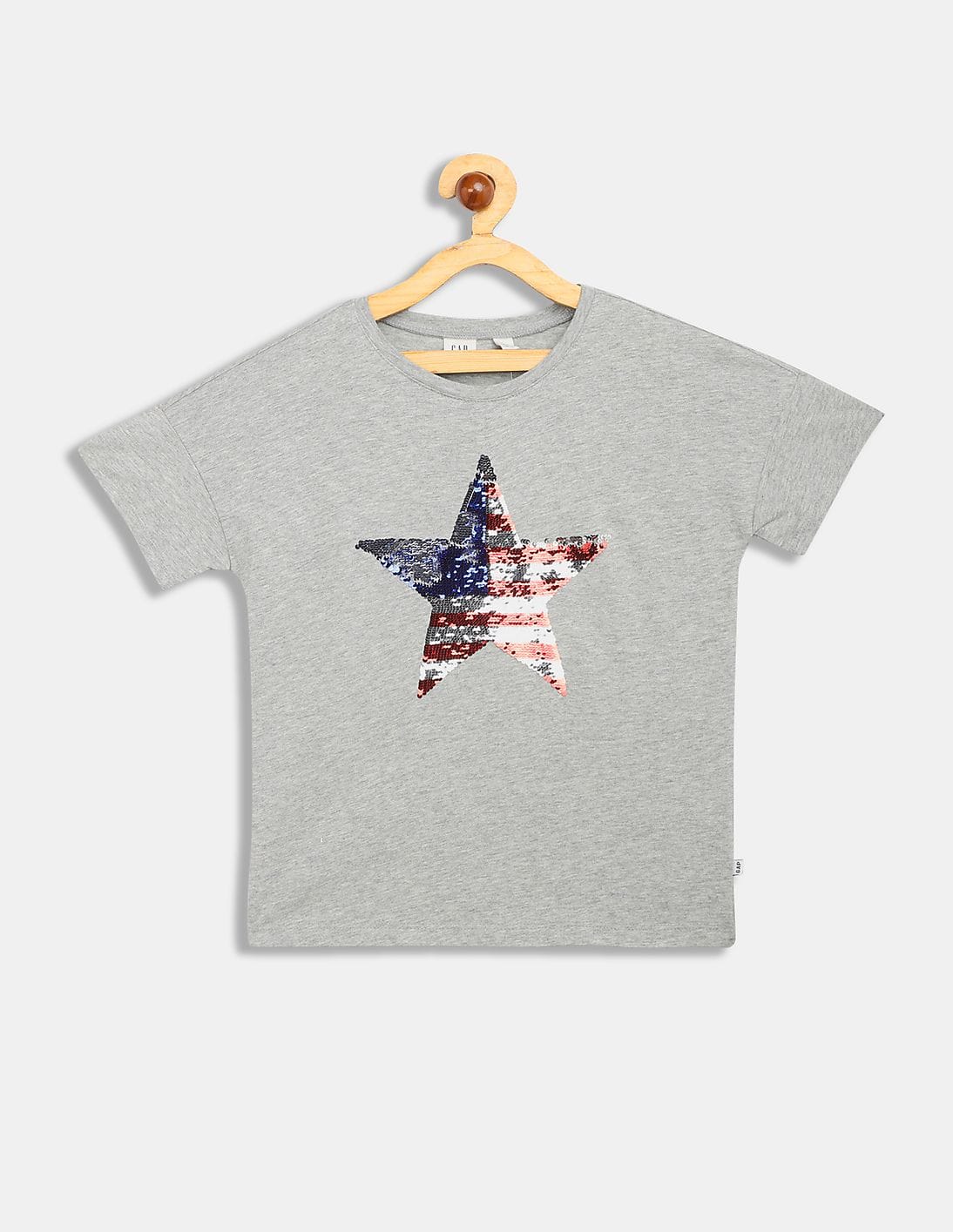 Girls Grey Flippy Sequin Union Jack T-Shirt