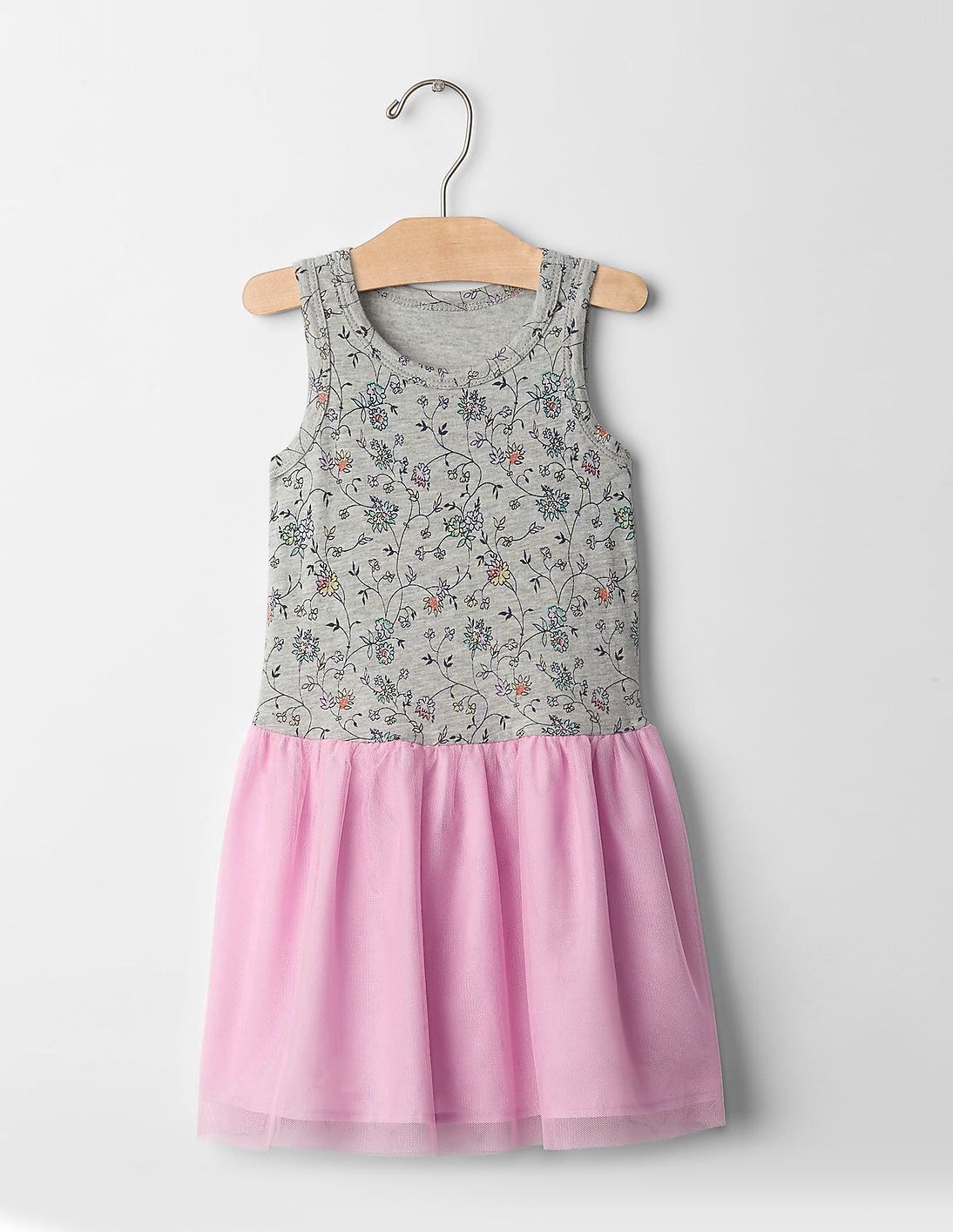 Girls Grey And Pink Floral Mix Fabric Tutu Dress