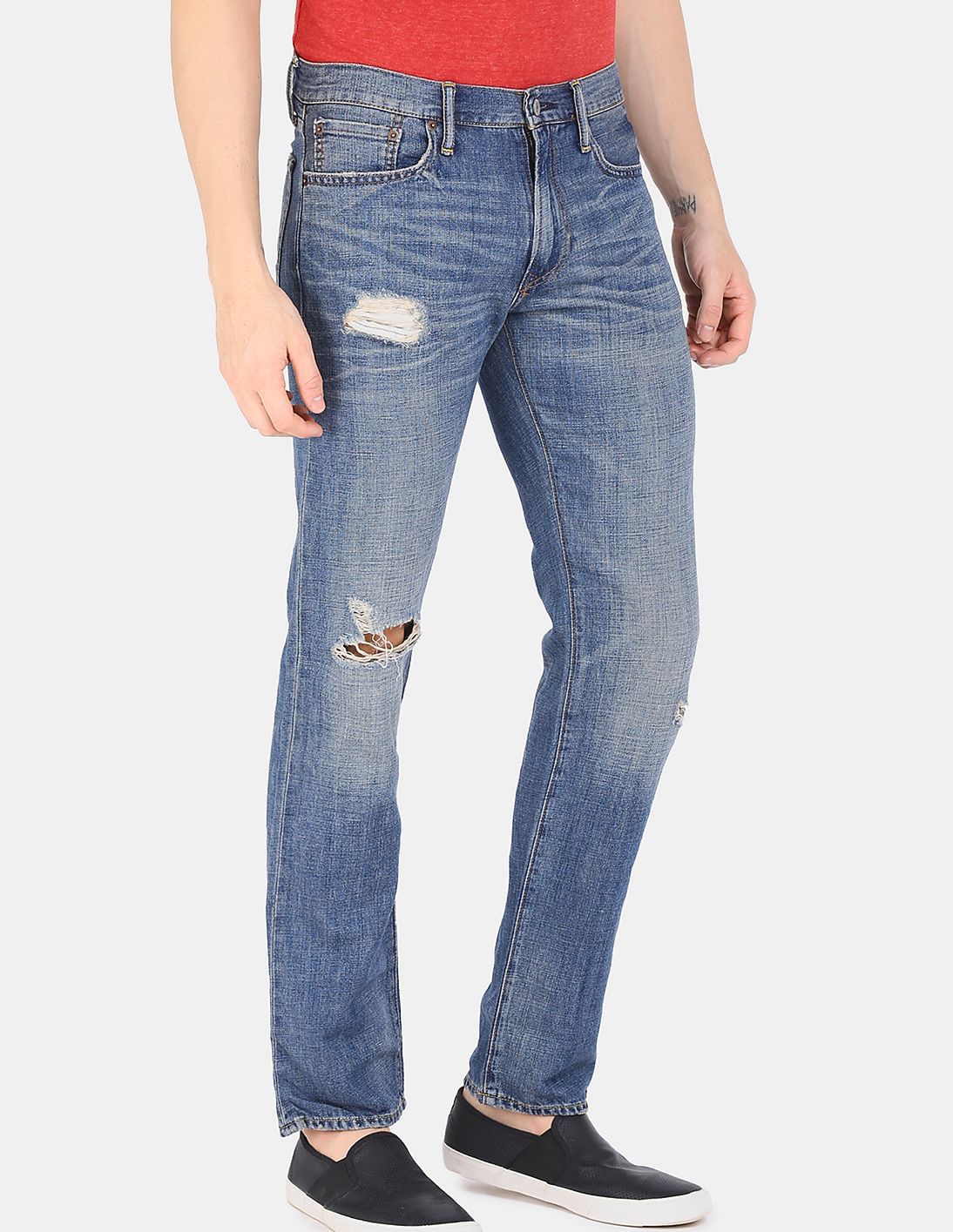 Men Blue Straight Fit Distressed Jeans