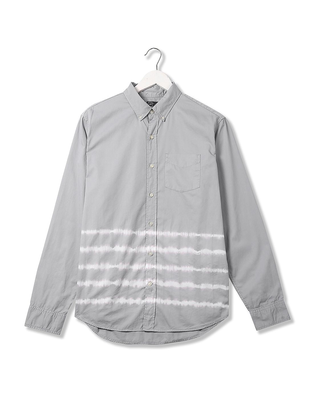 Men Grey Dip-Dye Standard Fit Shirt In Poplin
