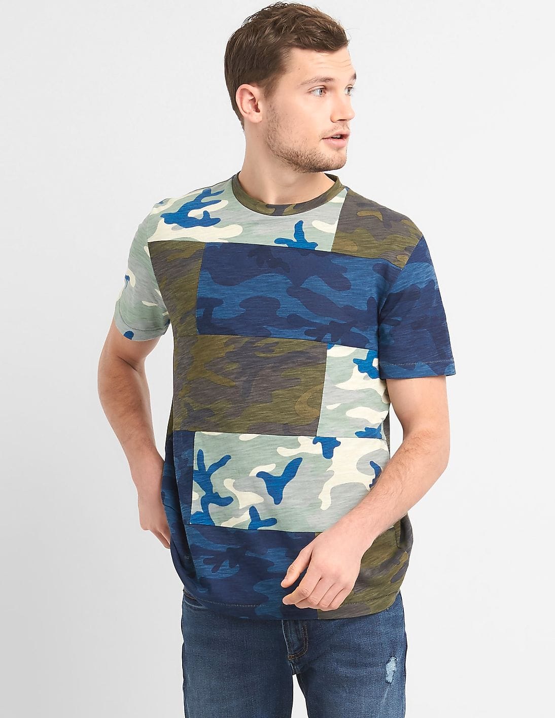 Men Multi Colour Short Sleeve Camo T-Shirt
