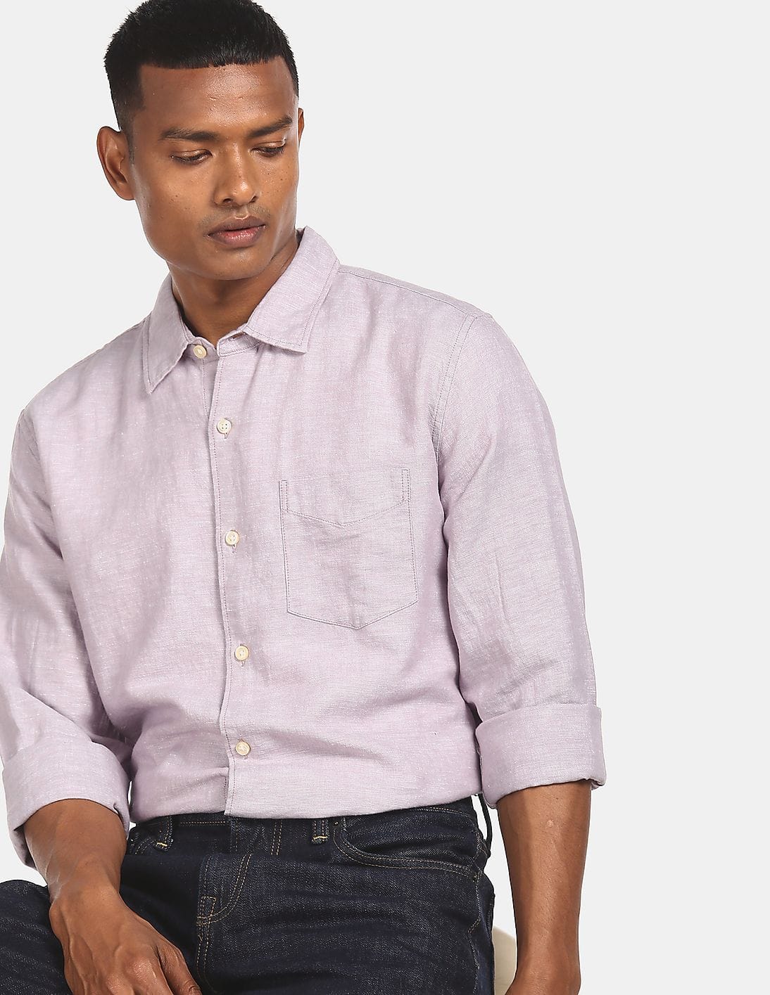 Men Pink Standard Fit Shirt In Linen-Cotton