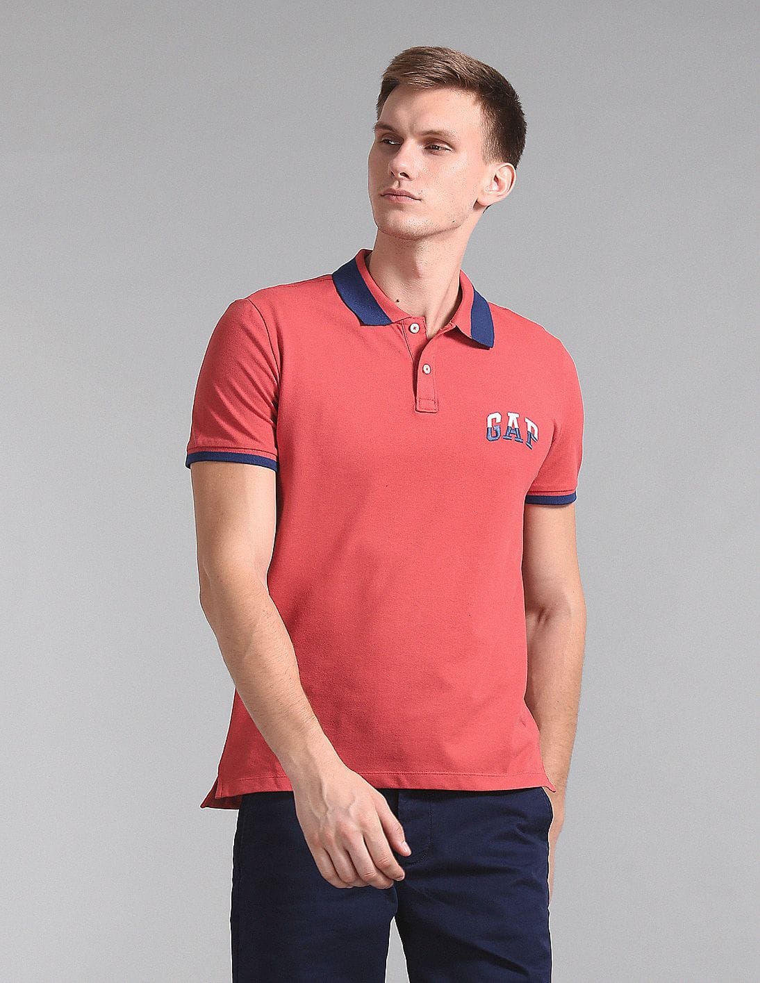 Men Red Short Sleeve Contrast Tip Polo Shirt