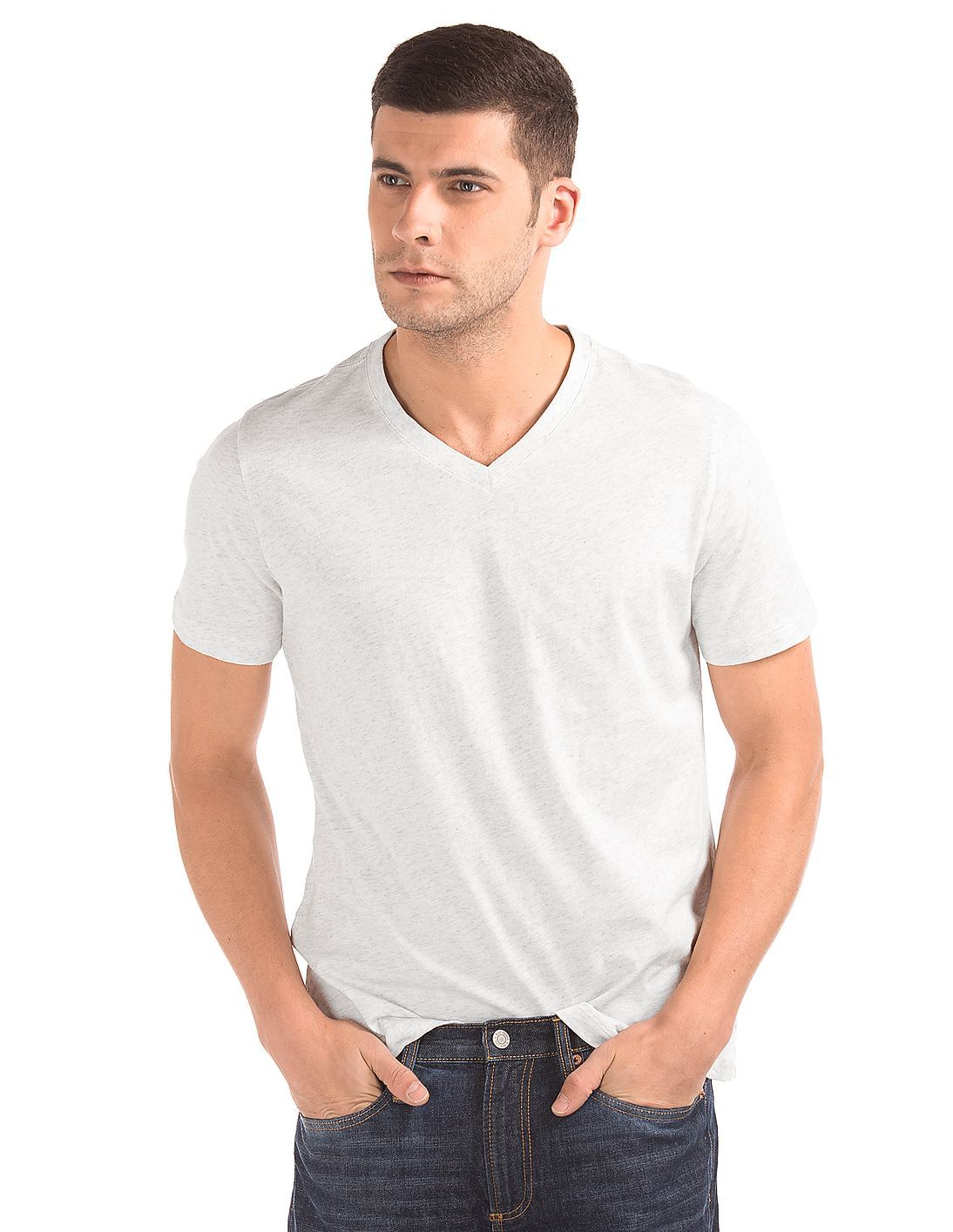 Men White Essential Short Sleeve V-Neck T-Shirt