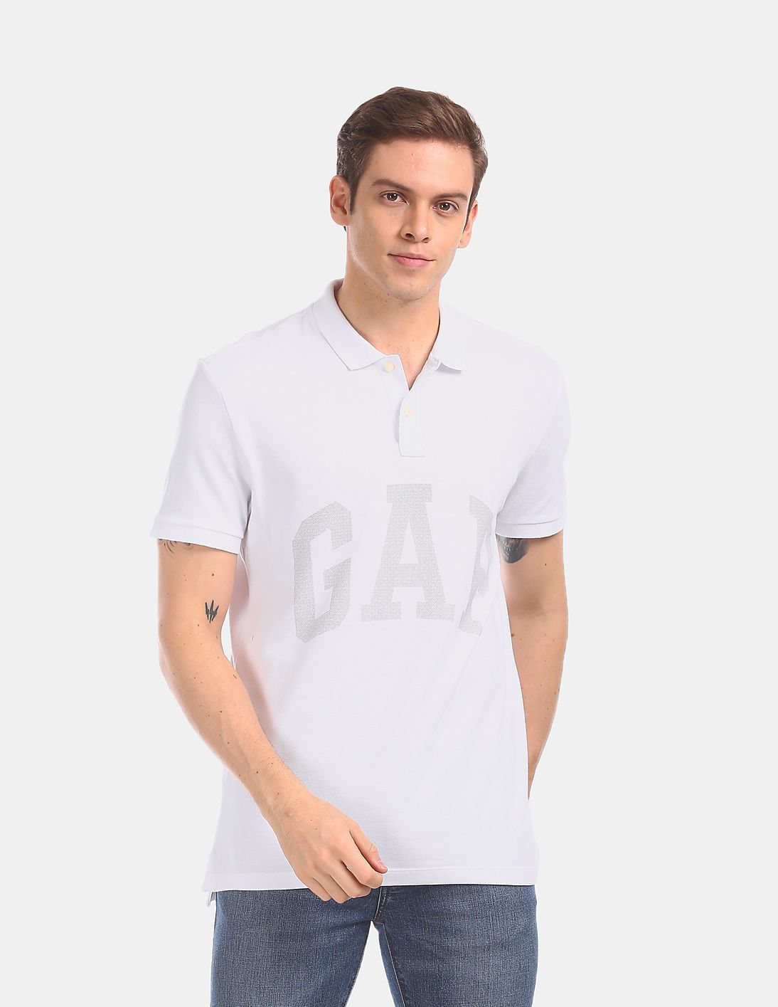 Men White Short Sleeve Cotton Stretch Logo Polo Shirt