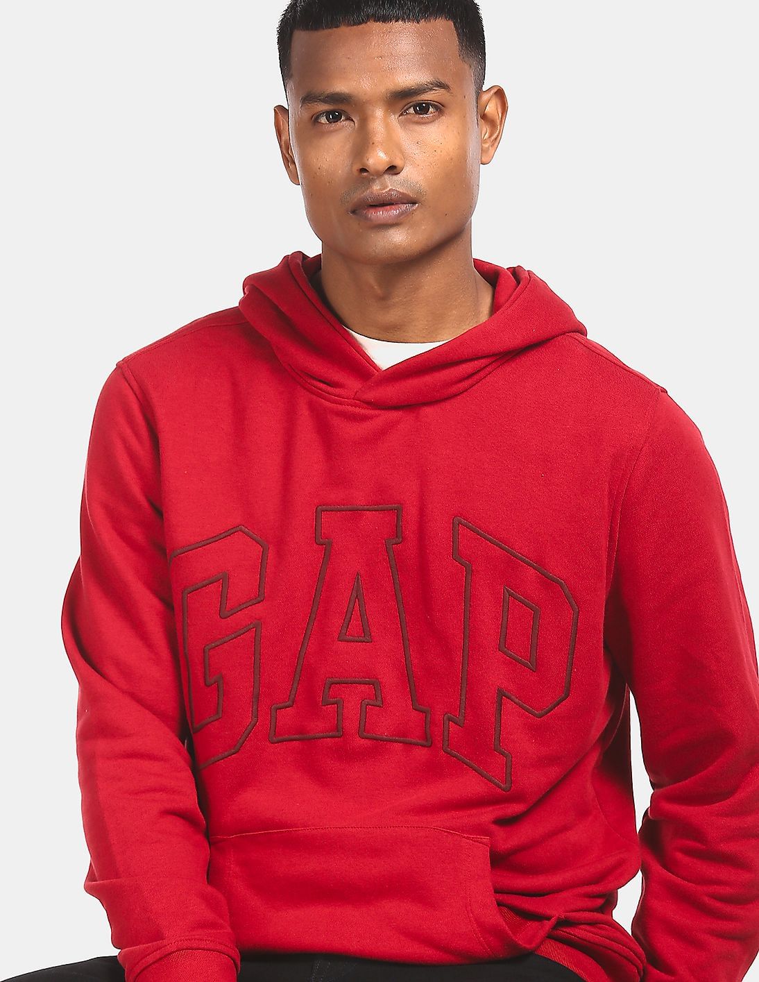 Men Red Long Sleeve Embroidered Logo Hooded Sweatshirt